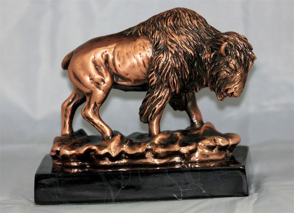BRASS STATUE BUFFALO **|**|** BRASS STATUE BUFFALO; SIZE W 3.2IN; L 6.2IN; H 5IN; THIS STATUE COMES ON A BLACK AND WHITE MARBLE BASE; IF YOU HAVE ANY QUESTIONS PLEASE FEEL FREE TO CONTACT US ; MSRP: $225