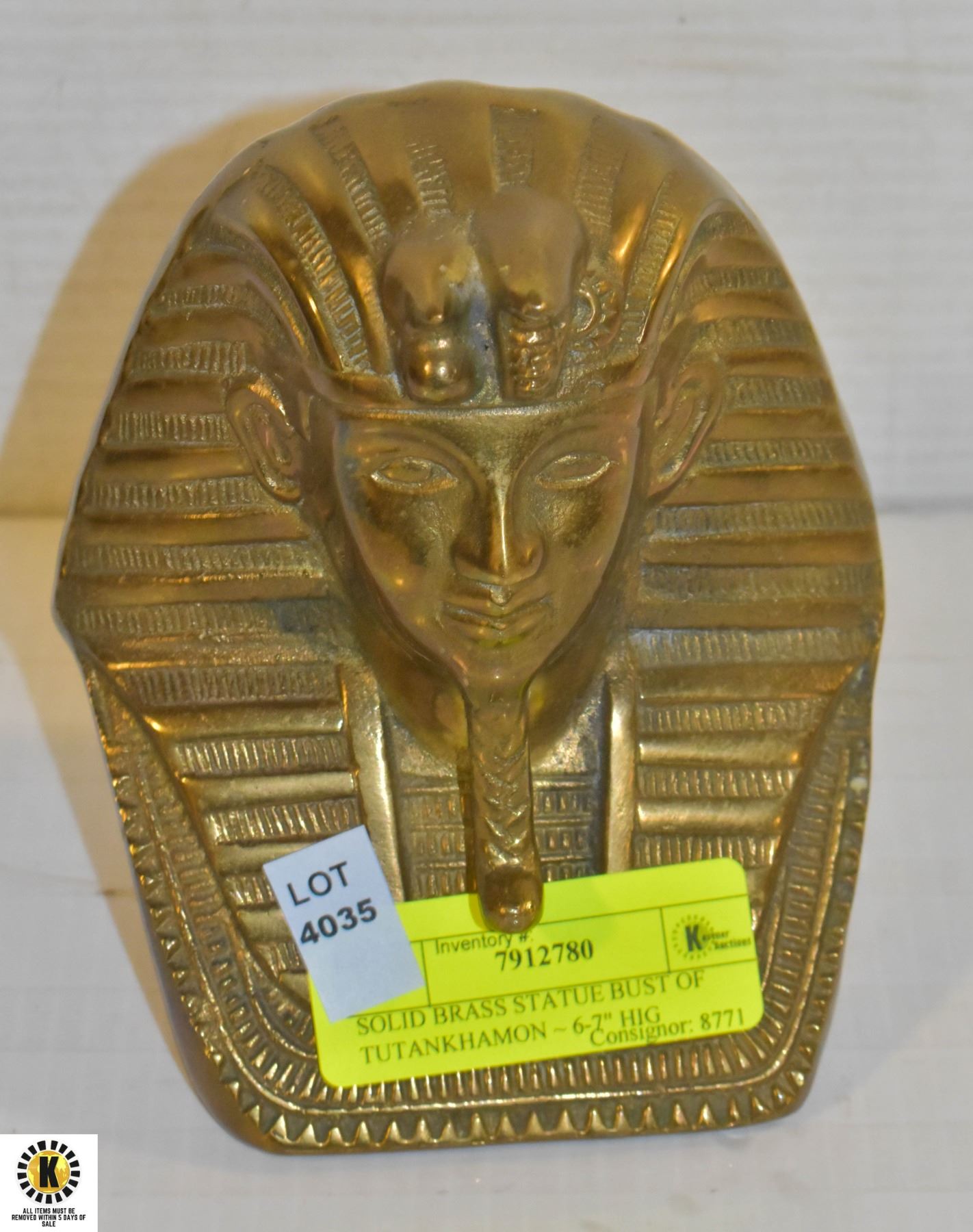 BRASS STATUE BUST OF TUTANKHAMON ~ 6-7" HIGH