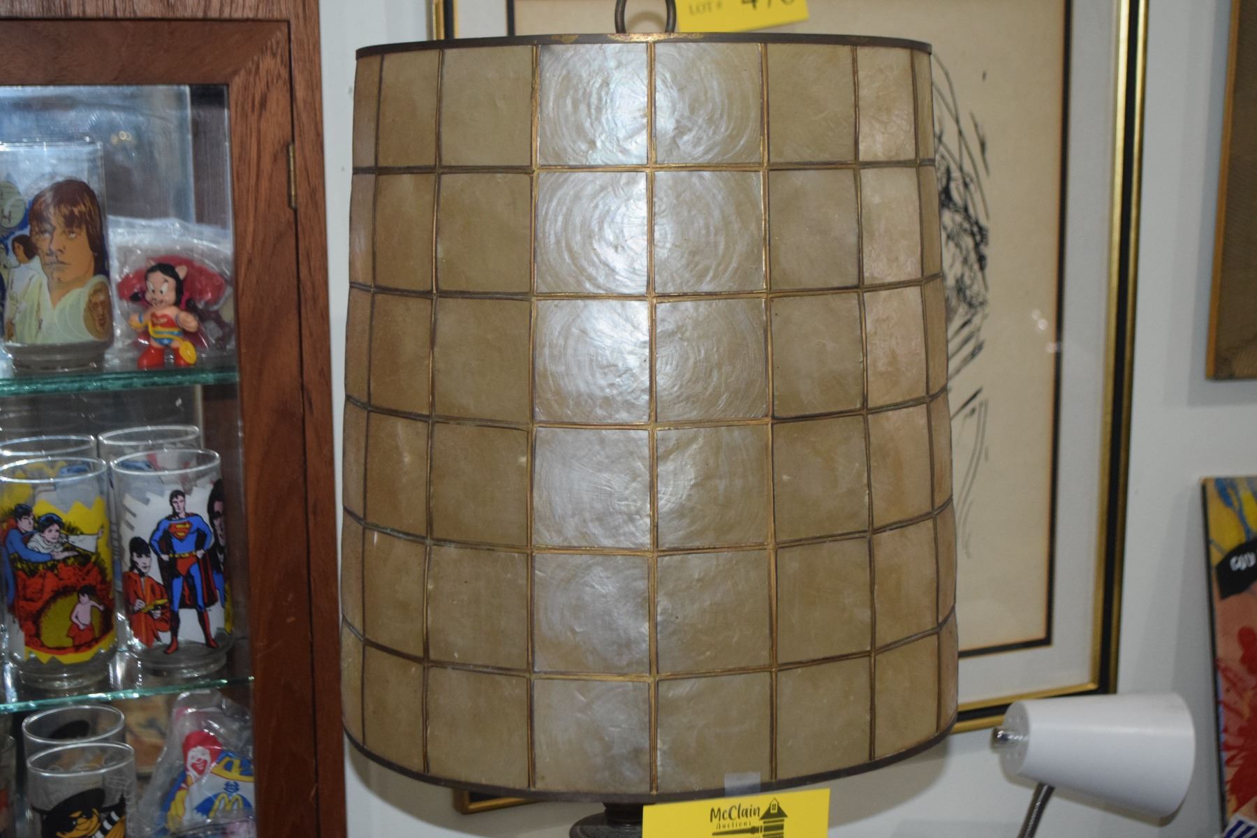 BRASS TABLE LAMP W/VINTAGE CAPIZ SHELL SHADE (33 1/4") (NEEDS REWIRING)
