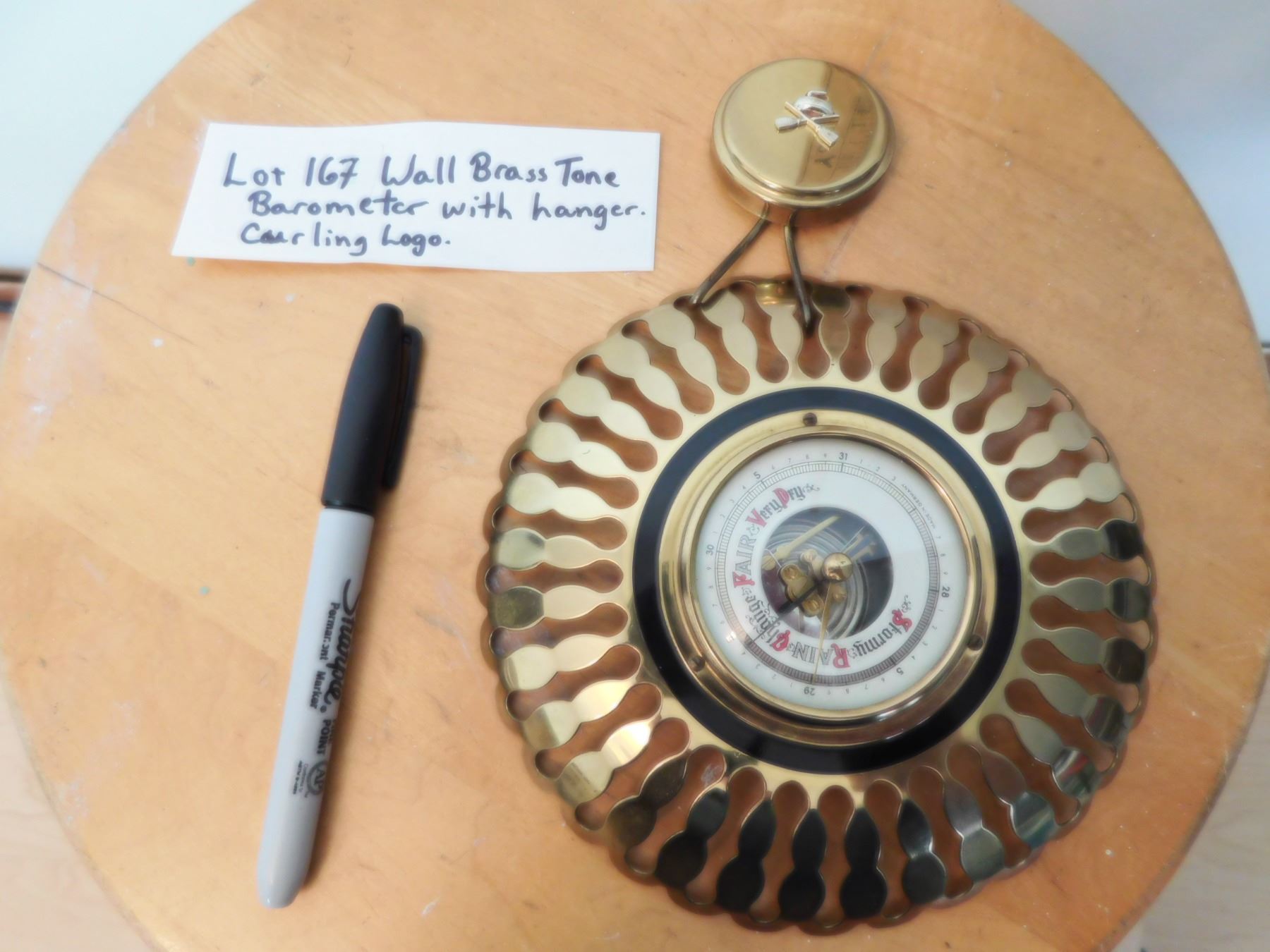 BRASS TONE BAROMETER WITH CURLING LOGO HOLDER