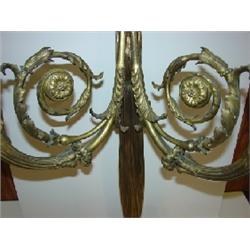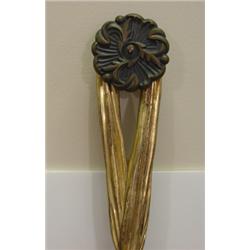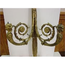BRASS WALL SCONCE. Bottom of candleholders depict Egyptian pharaohs. Ornately decorated. 36.5” H