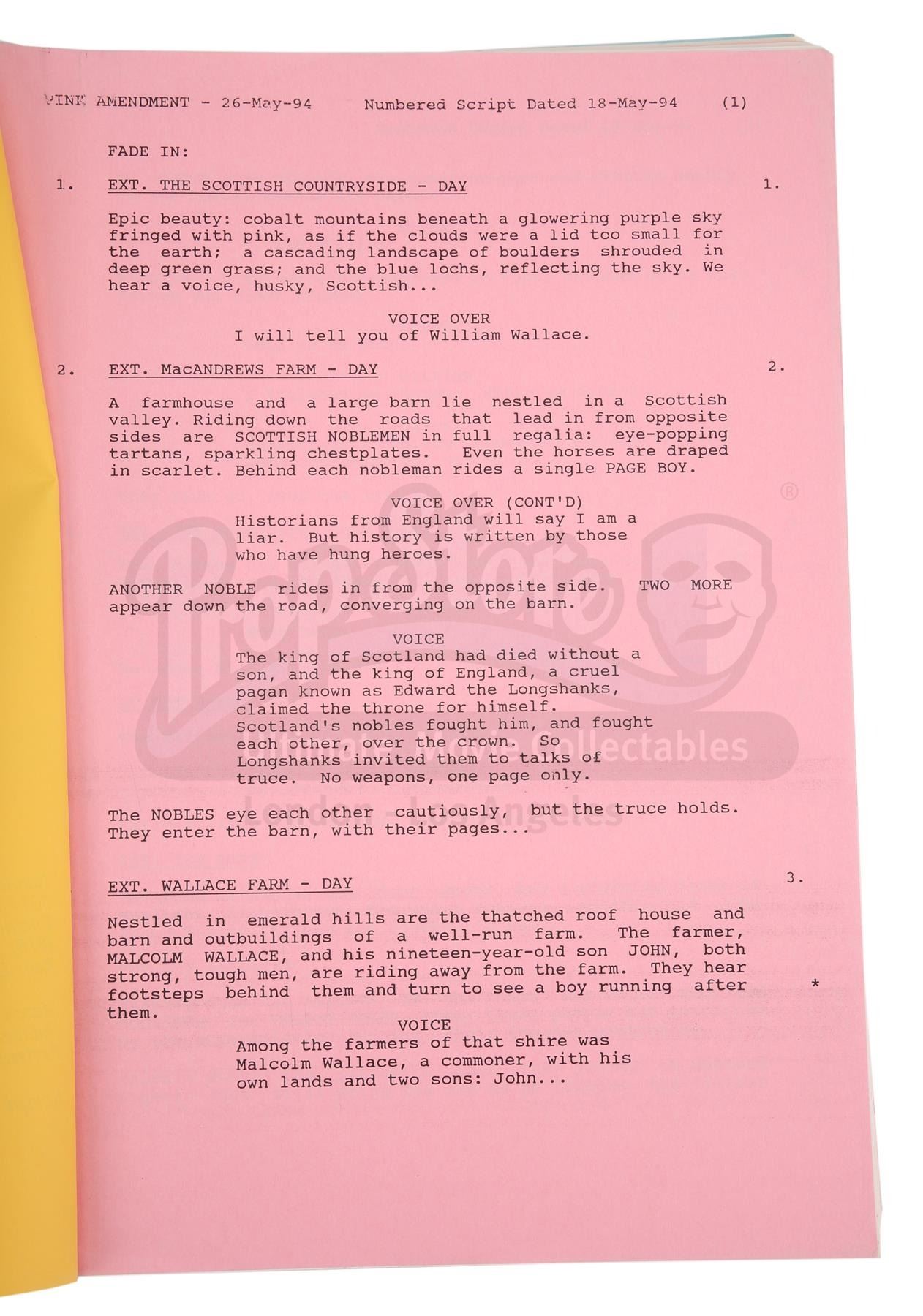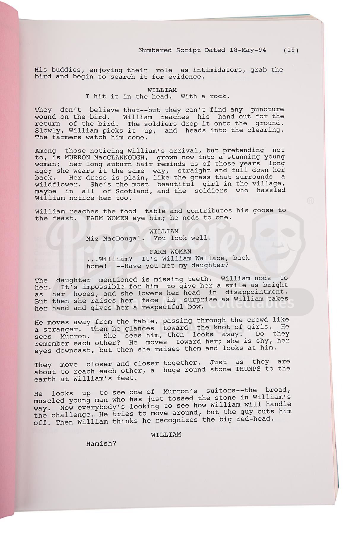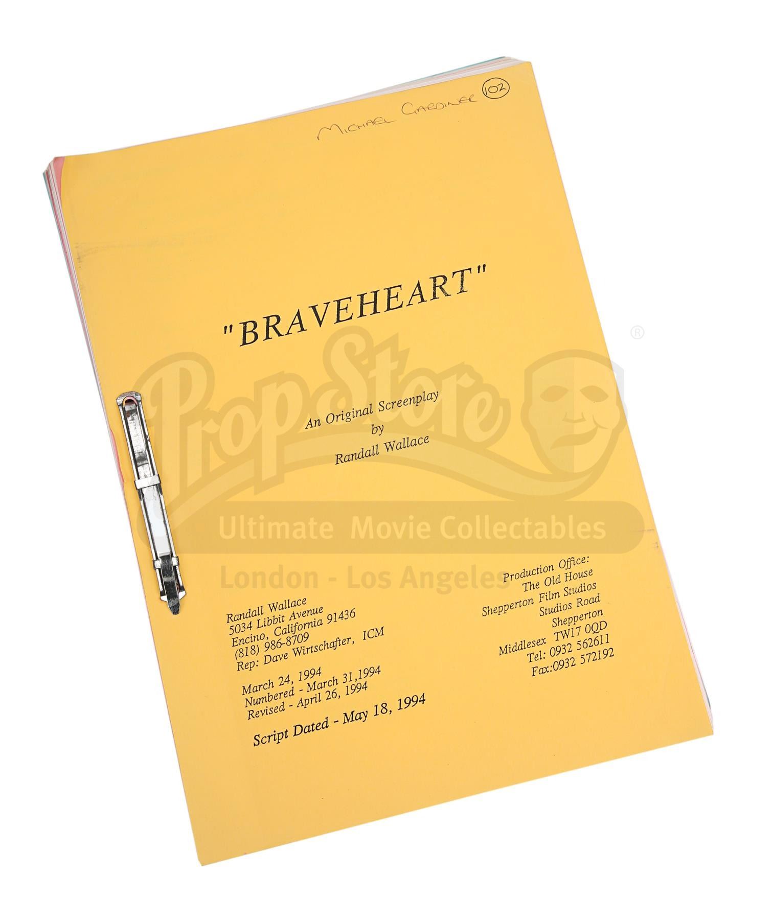 A production-used script from Mel Gibson's Academy Award-winning historical epic Braveheart (1995). This script, labelled "May 18, 1994", is credited to Randall Wallace.