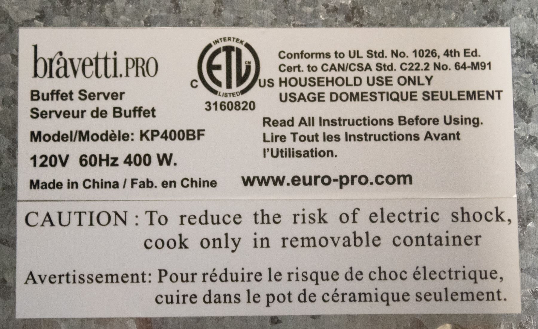 BRAVETTI STAINLESS STEEL BUFFET WARMER