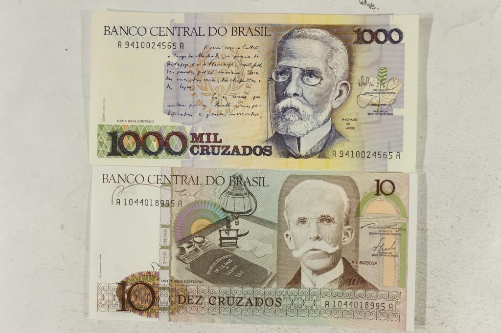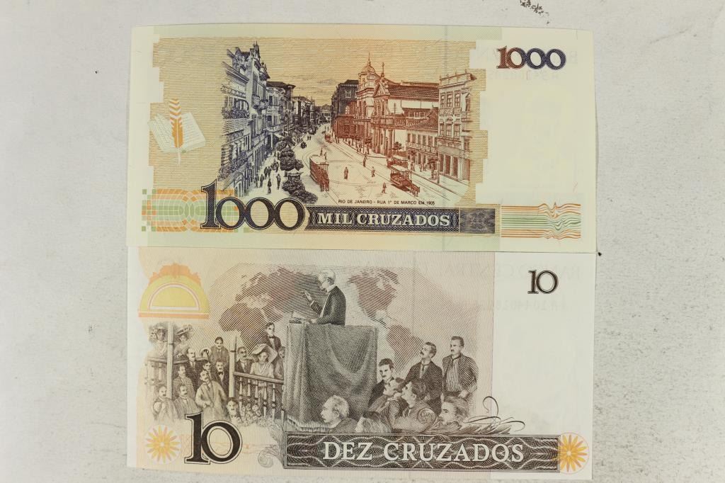 BRAZIL (1988) 10 & 1000 CRUZADOS BILLS CRISP UNC