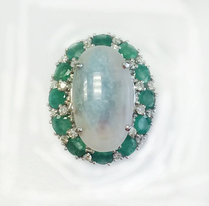 BRAZILIAN PARAIBA 7.18CT, 14K W/G RING 8.64GRAM / DIAMOND0.51CT / EMERALD 3.28CT