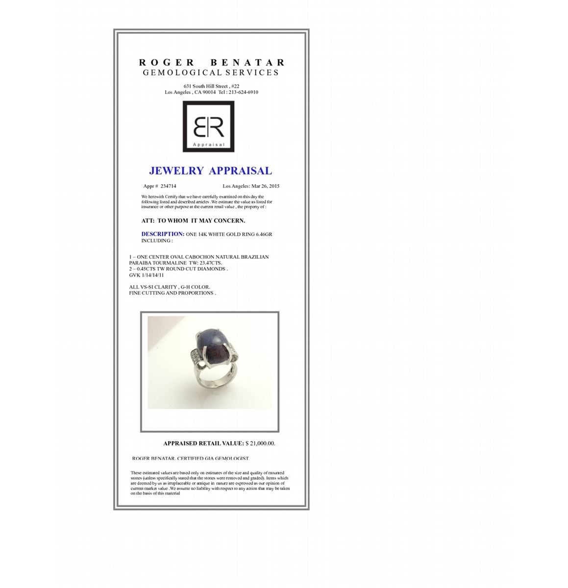 BRAZILIAN TOURMALINE 23.47CT, 14K W/G RING 6.46GRAM / DIAMOND RD 0.45CT