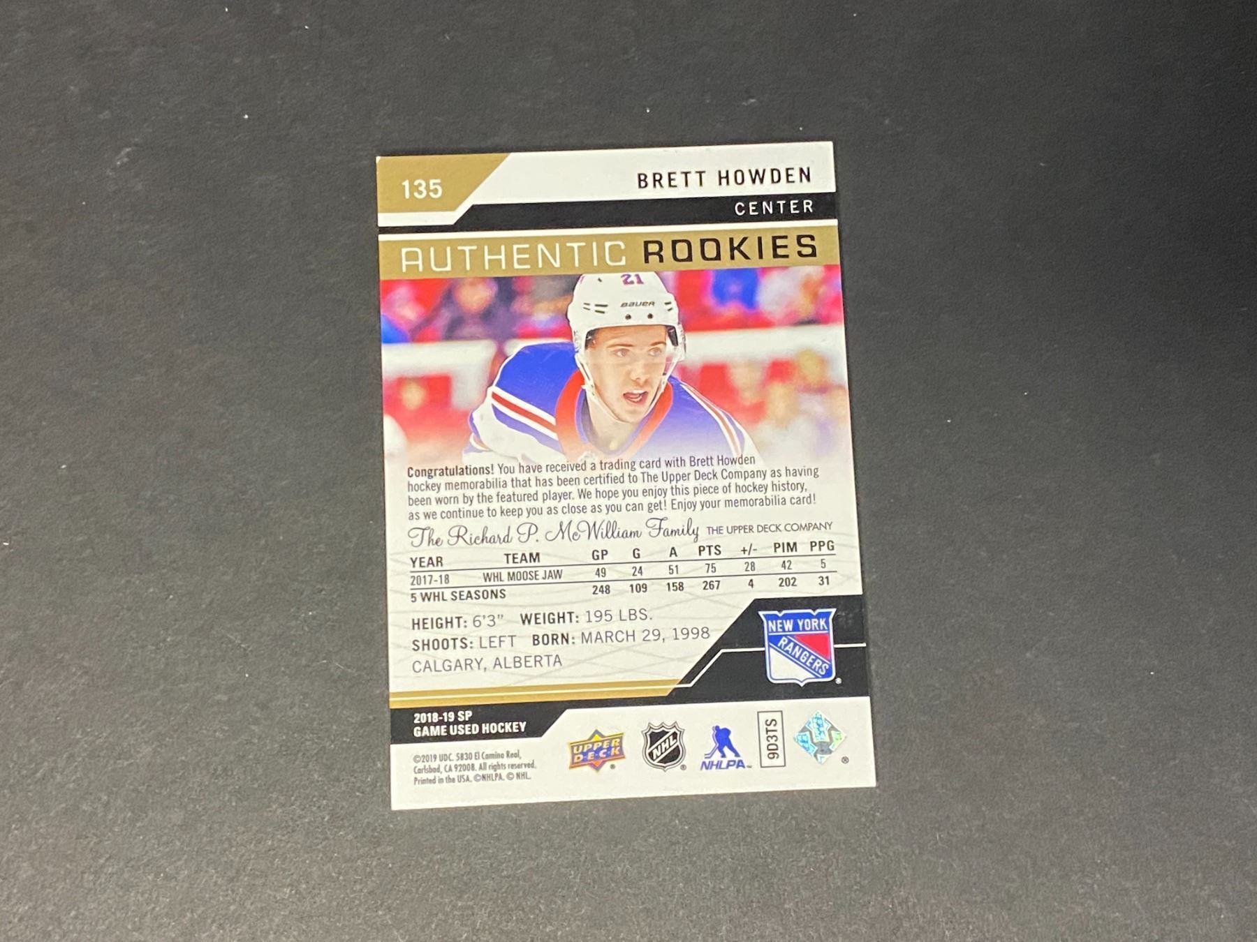 BRETT HOWDEN AUTHENTIC ROOKIES EXCELLENT LOOKING PATCH CARD #D/49