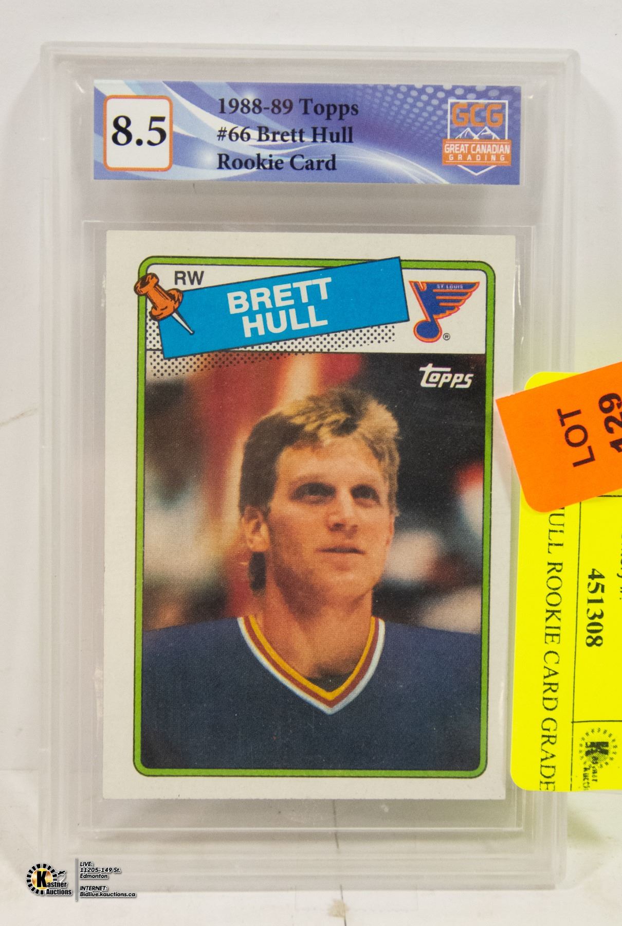THIS BRETT HULL TOPPS ROOKIE CARD IS GRADED 8.5