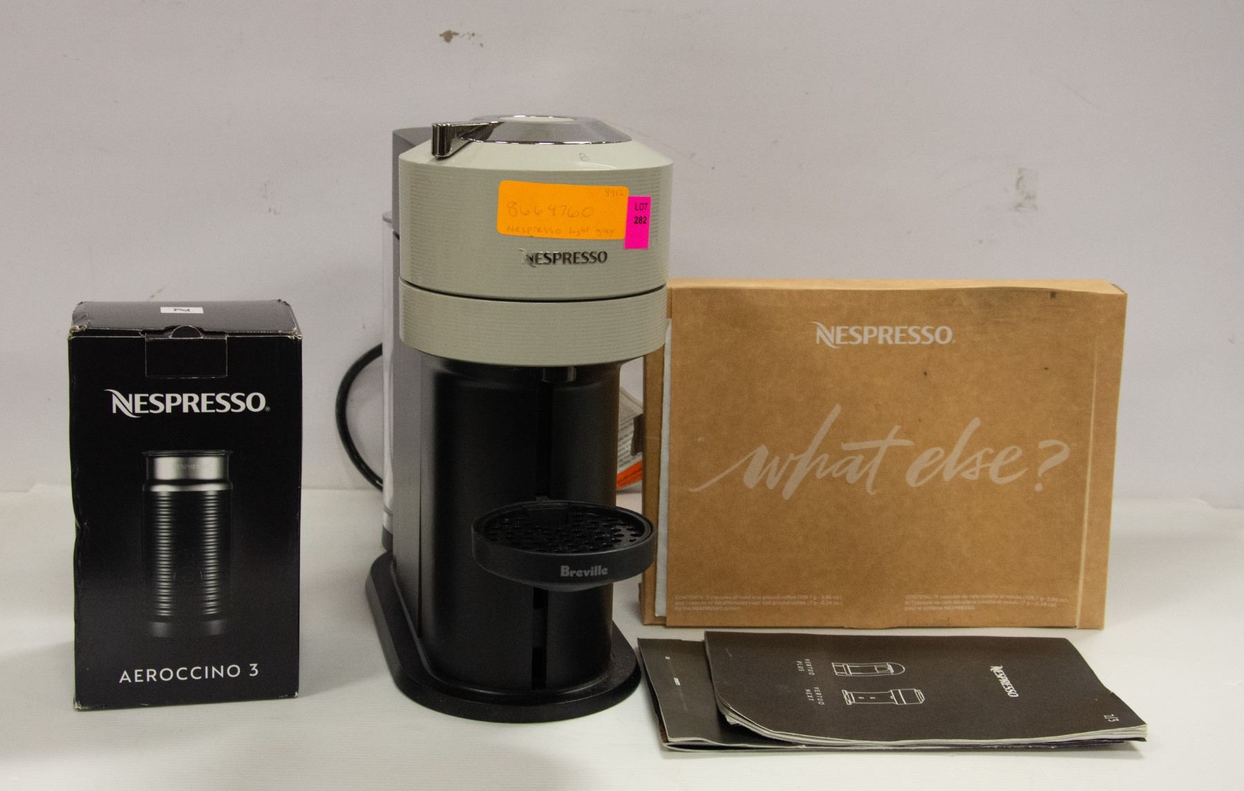 MACHINE, LIGHT GREY, COMES WITH BONUS COFFEE PODS, TESTED, MANUAL INCLUDED, **MISSING STAINLESS STEEL COVER FOR CUP HOLDER**AMZ SES
