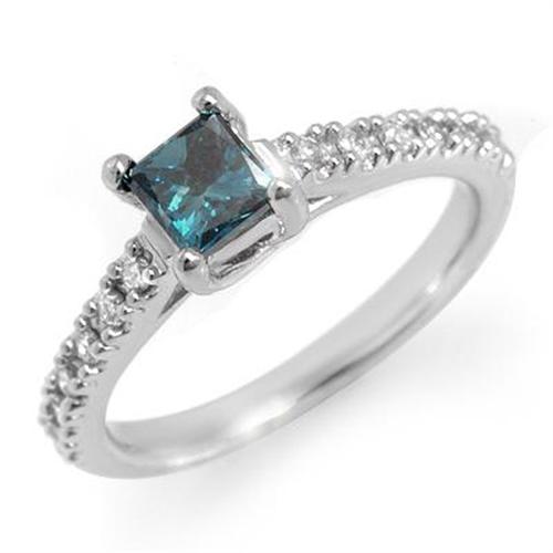 Rich white gold creates the perfect backdrop for the sparkling diamonds that abound on this ring. One princes-cut blue diamond is prong set at the center of the design. Round, prong-set diamonds add glittering accents to the shank.<BR><BR>The Greek believed diamonds were tears of the Gods,while the Romans believed they were splinters of fallen stars.This april birthstone,the most mystical and enduring of all precious gemstones is also believed as the ultimate way to connect love with eter