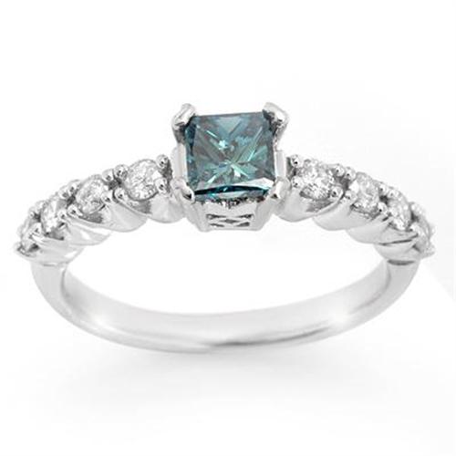 GENUINE 0.90 ctw WHITE & BLUE DIAMOND ENGAGEMENT LADIES RING IN 14KT WHITE GOLD