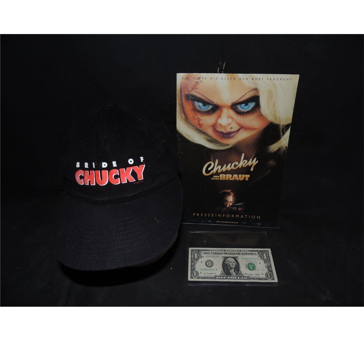 This is a rare Cast & Crew gift hat and a program from the German premiere of BRIDE OF CHUCKY.