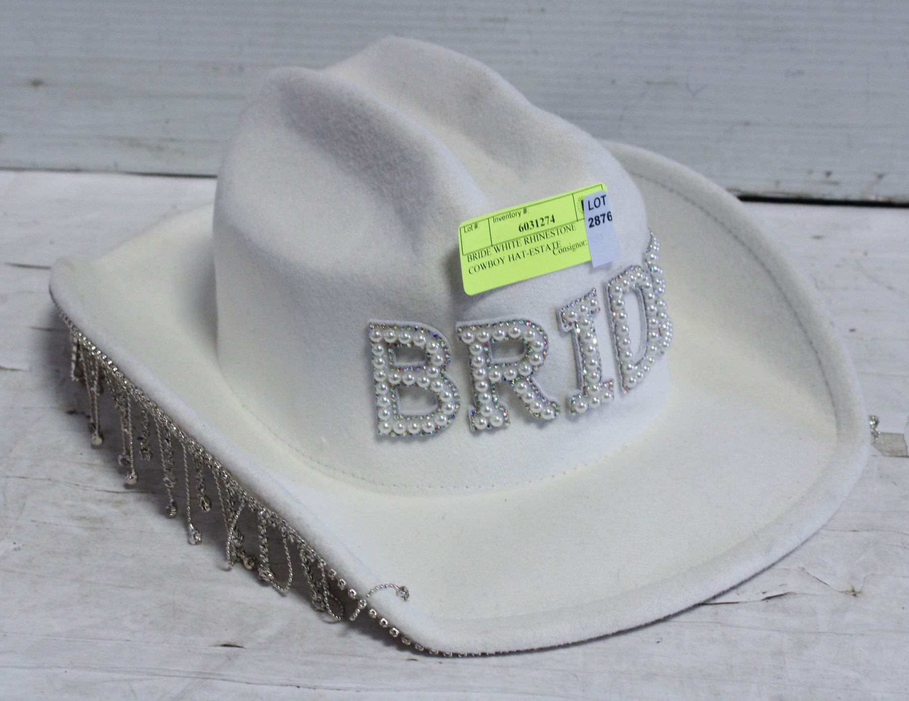 BRIDE WHITE RHINESTONE COWBOY HAT-ESTATE