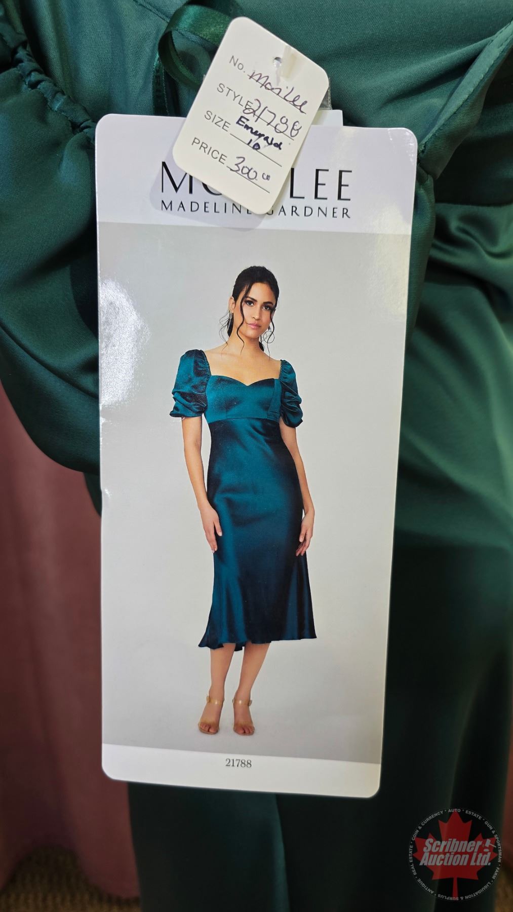 (Listing & Descriptions are a GUIDE ONLY and are subject to changes, errors, additions or deletions. The majority of dresses were fitted/cinched/clamped to mannequins for auction catalog pictures. See Tags in Pictures for Dress / Item Details if tagged. Many or all of the dresses have been tried on in the store as normal retail activity. Winning bidders may want to consider Drycleaning. Please use the provided pictures to satisfy yourself to the Conditions. There will NOT be garment bags provided, please bring your own when picking up dresses after the Auction concludes. Please bring help or assistance to load out store fixtures. Please Read & Understand All Terms & Conditions for this Auction Sale. There is designated dates & times for pick ups after the Auction.)