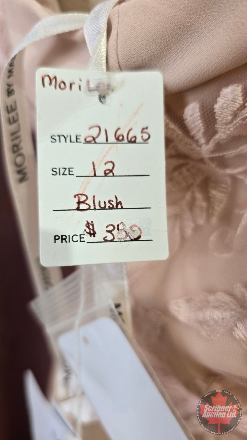 (Listing & Descriptions are a GUIDE ONLY and are subject to changes, errors, additions or deletions. The majority of dresses were fitted/cinched/clamped to mannequins for auction catalog pictures. See Tags in Pictures for Dress / Item Details if tagged. Many or all of the dresses have been tried on in the store as normal retail activity. Winning bidders may want to consider Drycleaning. Please use the provided pictures to satisfy yourself to the Conditions. There will NOT be garment bags provided, please bring your own when picking up dresses after the Auction concludes. Please bring help or assistance to load out store fixtures. Please Read & Understand All Terms & Conditions for this Auction Sale. There is designated dates & times for pick ups after the Auction.)