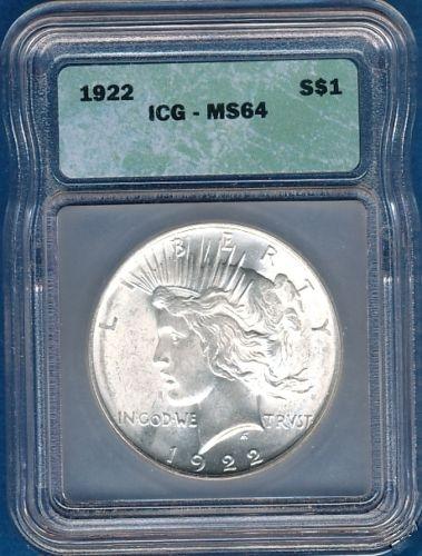 BRIGHT WHITE 1922 SILVER PEACE DOLLAR-ICG-MS 64