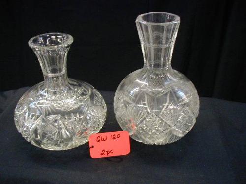BRILLANT CUT CRYSTAL (1) VASE 9in, (1) DECANTER PRESS & CUT 7 1/2in, 2 PCS