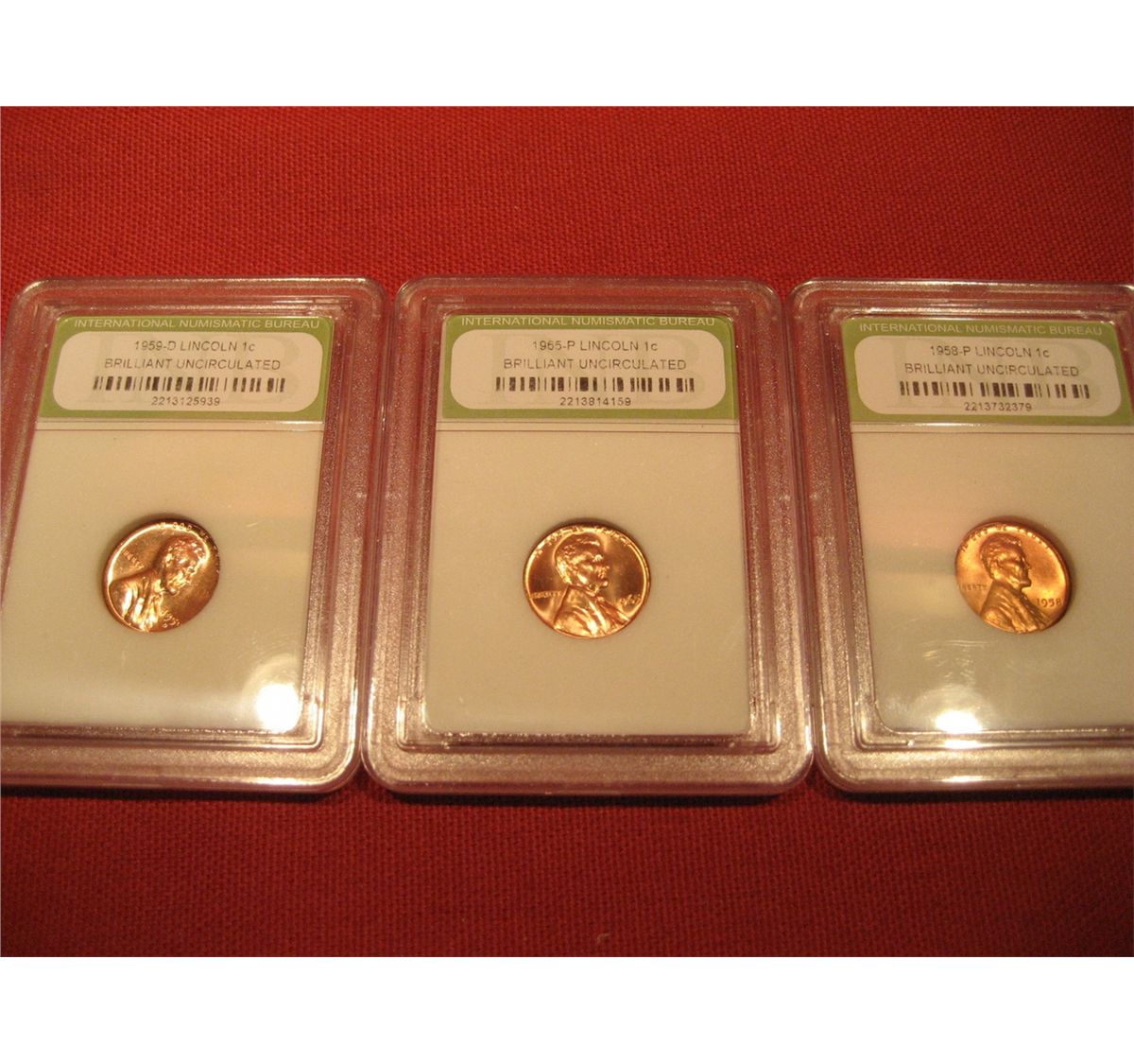 DATES: (1)1959, (1)1958: (1)1965 BRILLANT UNCIRCULATED PENNIES
