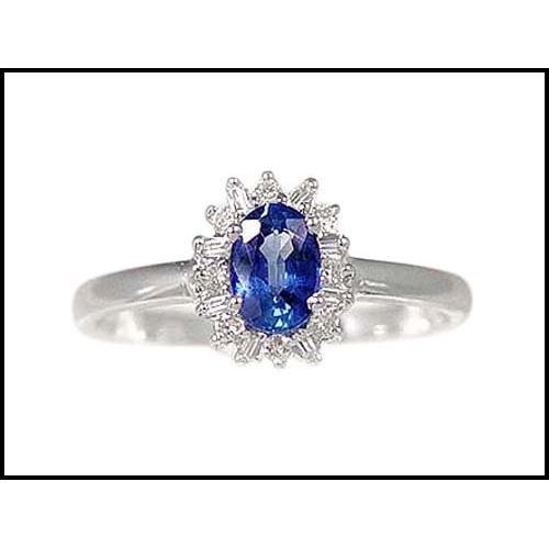 The natural sapphire exhibits high brilliance as set in 18K solid white gold. 8 baguette and 8 full cut white diamonds are a very pleasing border for the center gem. The sapphire measures 6mm x 4.2mm. Where and when would one see a lovely ring like this for less than $500? Now you can own it for just a fraction of that. Size 7 is easy to change.