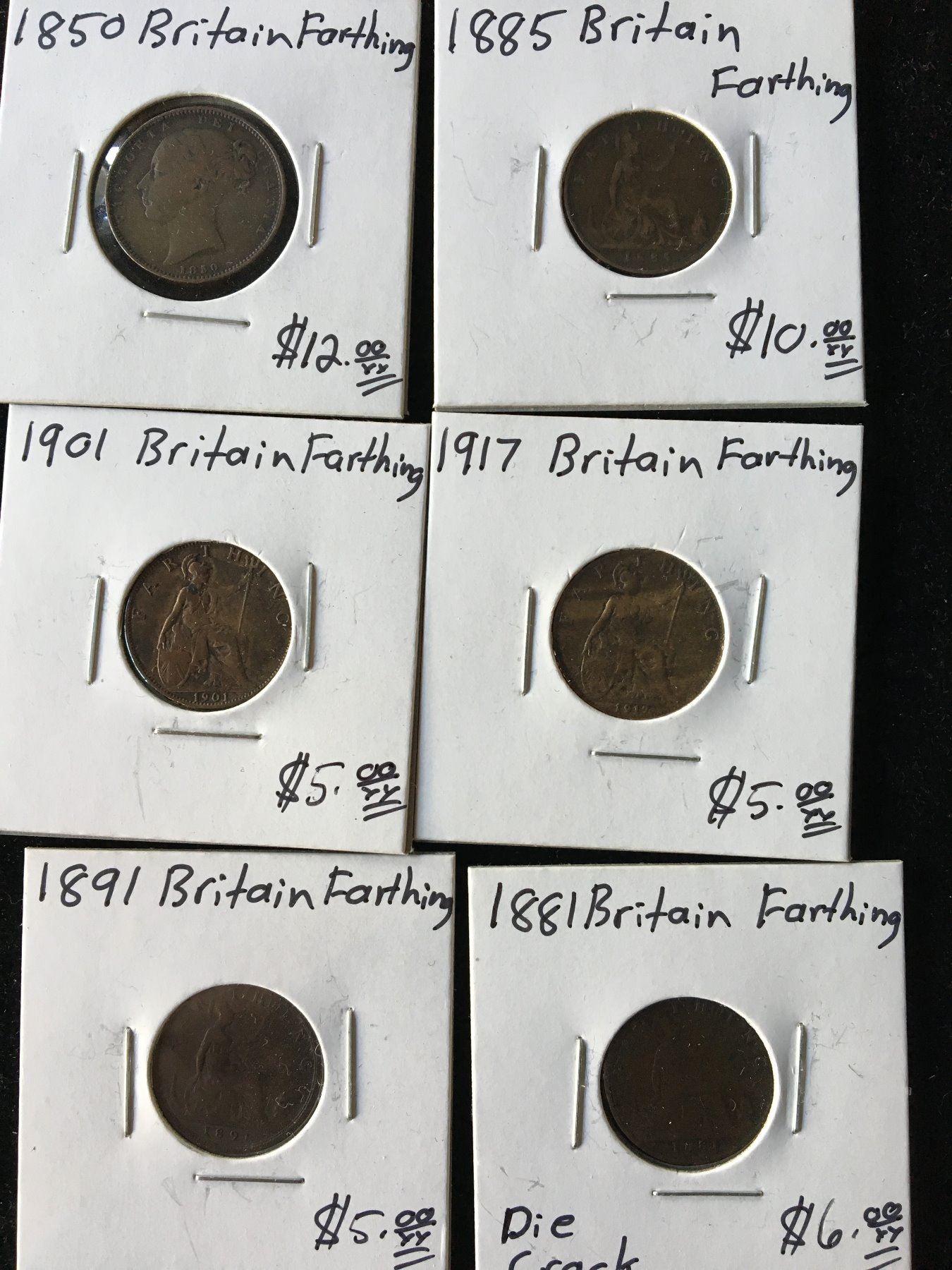 1850,1881,1885,1891,1901 AND 1917 BRITAIN FARTHINGS..VG-VF FOR GRADES