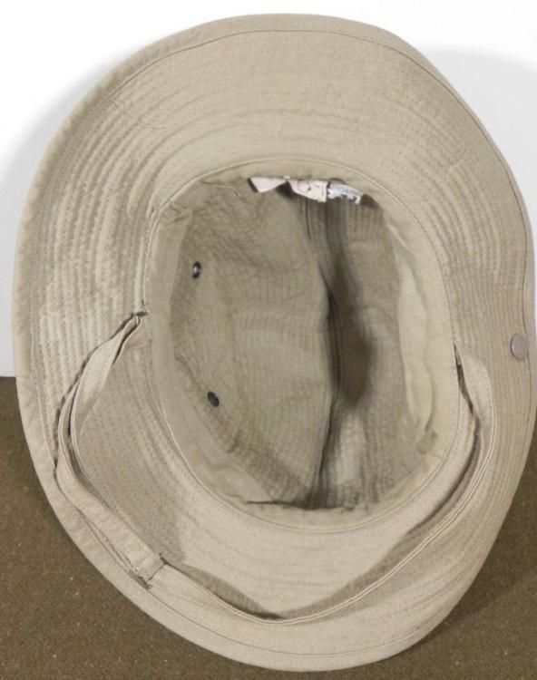 BRITISH/AUSTRALIAN MILITARY TYPE TAN HAT W/BRIM & CHIN-STRAP-MARKED TAG:69/DUVOIS-LEMANS * SNAP UP BRIM *