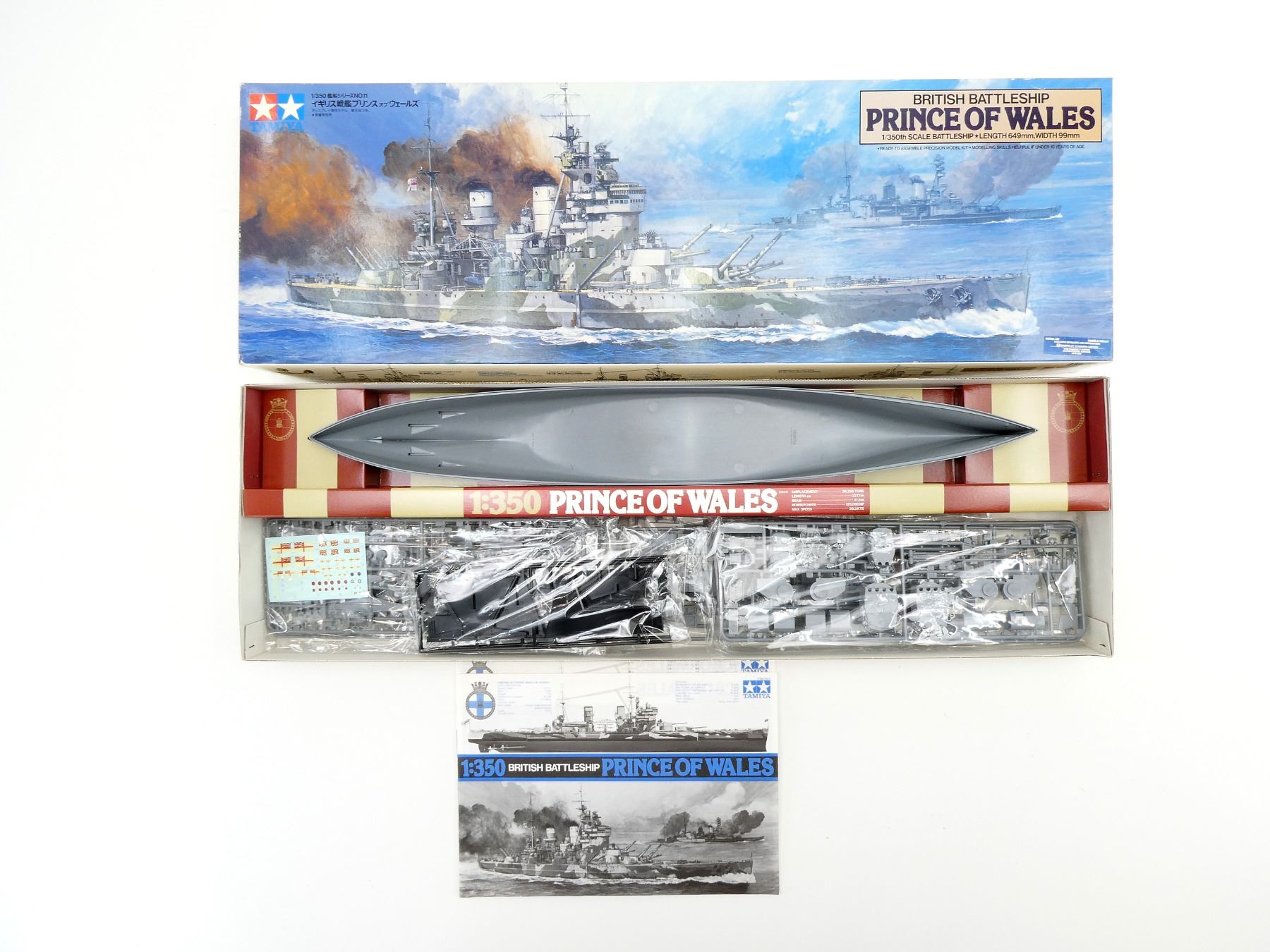 (1) BRITISH BATTLESHIP PRINCE OF WALES MODEL KIT, 1/350TH SCALE BATTLESHIP IN ORIGINAL PACKAGING WITH INSTRUCTION MANUAL, APPEARS NOS, MAY NOT BE COMPLETE / PIECES MAY BE MISSING, LENGTH APPROX. 25.5" WIDTH APPROX. 3.9". SEE PHOTOS.