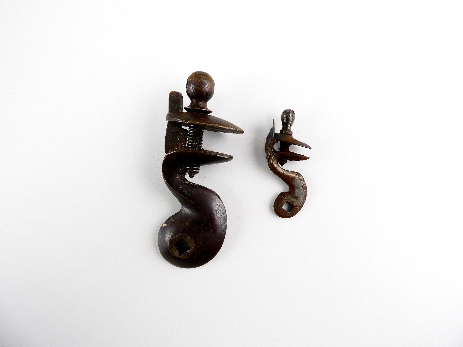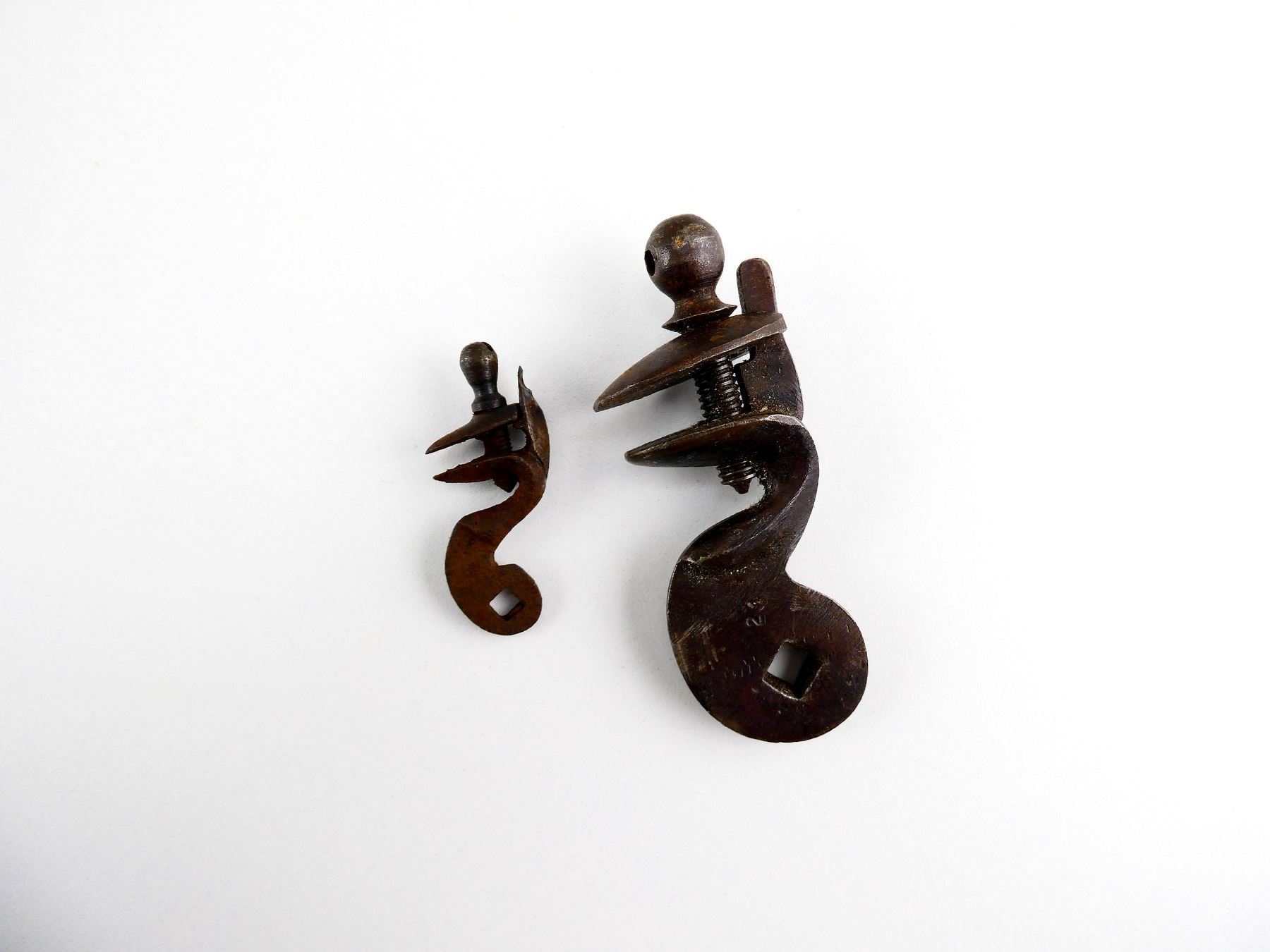 LOT INCLUDES; BROWN BESS FLINTLOCK STYLE HAMMER, MARKED: "21", WITH MINIATURE FLINTLOCK HAMMER, UNMARKED. MAY REQUIRE FITTING. SEE PHOTOS.