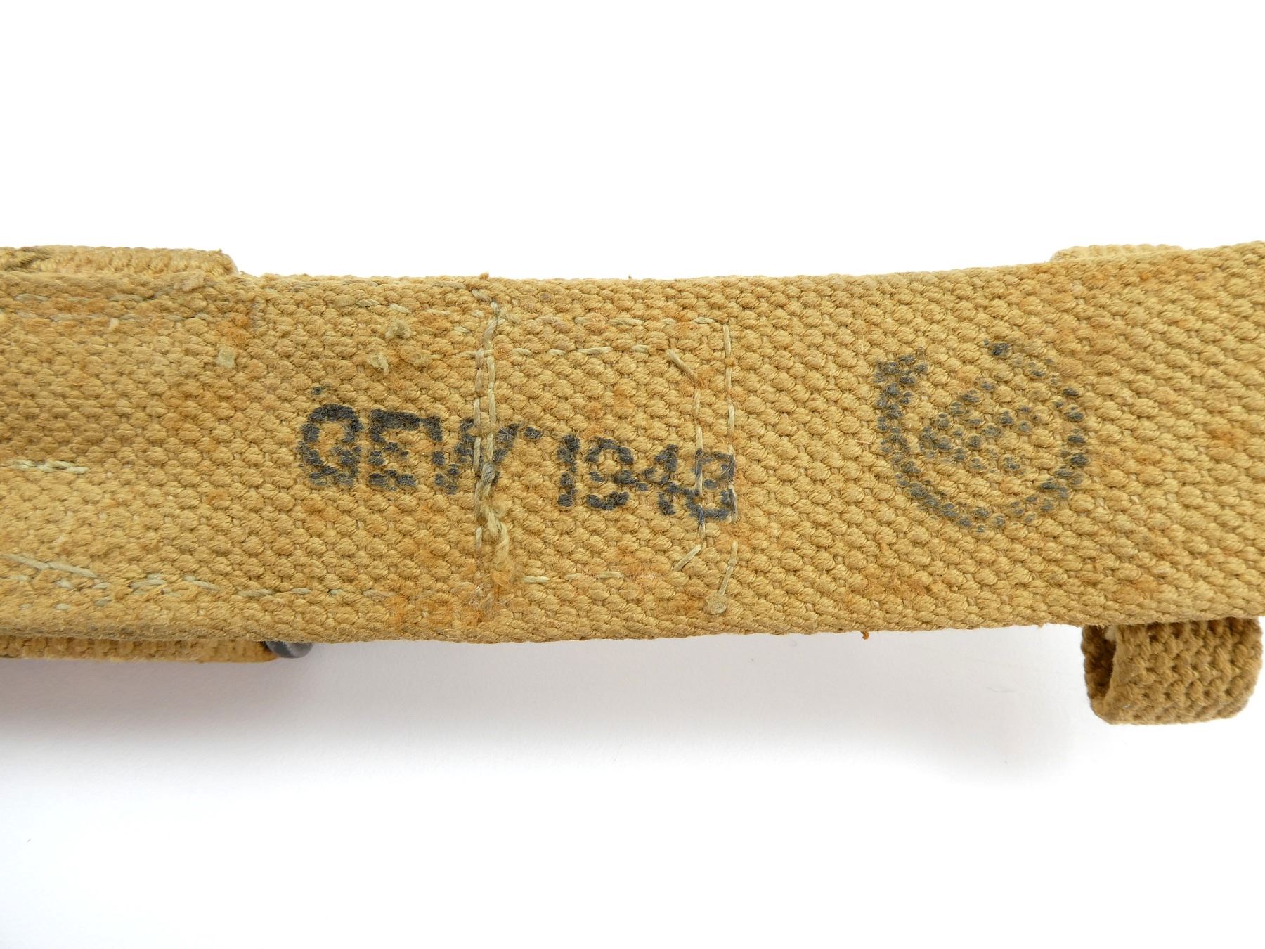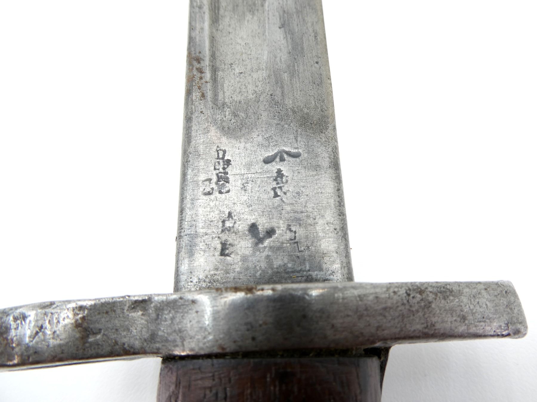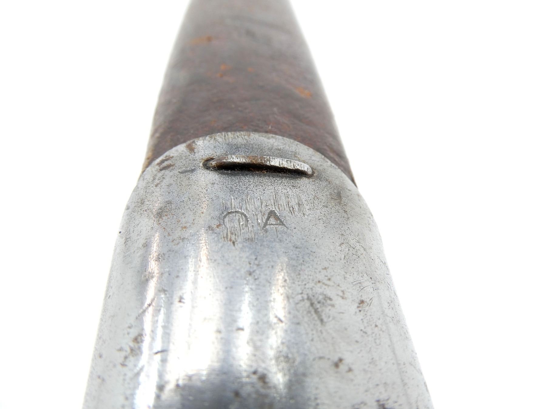 (1) FITS .303 CALIBER SHORT MAGAZINE LEE-ENFIELD NO.I MK.III (SMLE) RIFLES, RICASSO MARKED: "1907" OVER "6 1?" OVER "WILKINSON", OTHER-SIDE MARKED: VARIOUS PROOF MARKS, "X" (BEND TEST) & BROAD ARROW, NO QUILLON, 2-PIECE WOOD GRIPS, METAL POMMEL NO VISIBLE MARKINGS, AUSTRALIAN MILITARY LEATHER & METAL SCABBARD, THROAT MARKED: "D 2 D" & BROAD ARROW, TIP MARKED: "OA", TAN P37 CANVAS FROG MARKED: "GEW 1948" & C-BROAD ARROW, BLADE APPROX. 16.75" & OAL APPROX. 21.75".