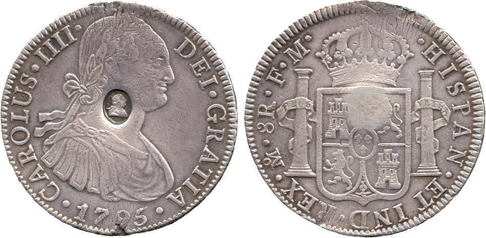 BRITISH COINS. George III, Emergency issue, Dollar, oval countermark with the bust of George III on portrait type Mexico 8-Reales, Mexico mint, 1795 FM (ESC 129; S 3765A). Very fine, the countermark about extremely fine.