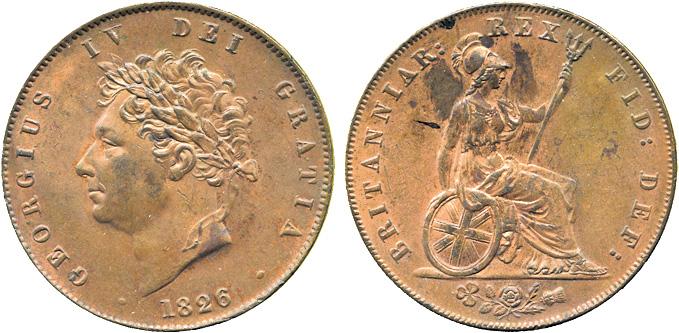 BRITISH COINS. George IV, Halfpenny, 1826, laureate head left, date below, rev Britannia s