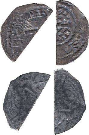 BRITISH COINS. Henry II, Tealby Cut Halfpenny, transitional class A (c.1162), London, moneyer Pires Salerna (see BMC 546), good fine; Tealby Cut Halfpenny, bust C2 (c.1161-1165), uncertain mint (N 957; S 1339), weakly struck on obverse, good fine. (2)