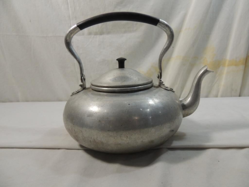BRITISH COLONY KNOBLER ALUMINIUM TEAPOT, VINTAGE TEAPOT, AS SHOWN SEE PHOTO FOR MORE DETAILS.