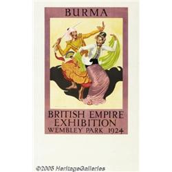 <B>British Empire Exhibition 1925 Wembley, Burma (Dangerfield Printing Co. Ltd. London (1924) </B></I>. Travel (25" x 40"). Poster promoting the Burma pavillion at the Wembley exhibition. Artist T. Martin-Jones. Very Fine condition.