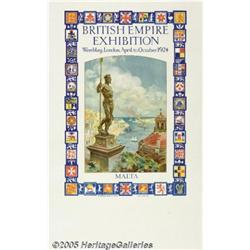 <B>British Empire Exhibition 1925 Wembley, Malta (Dangerfield Printing Co. Ltd. London, 1924)</B></I> Travel (20" X 30"). Double crown poster for the Malta display at the British Empire Exhibition. Artist E. L. Dingli. Very Fine condition.