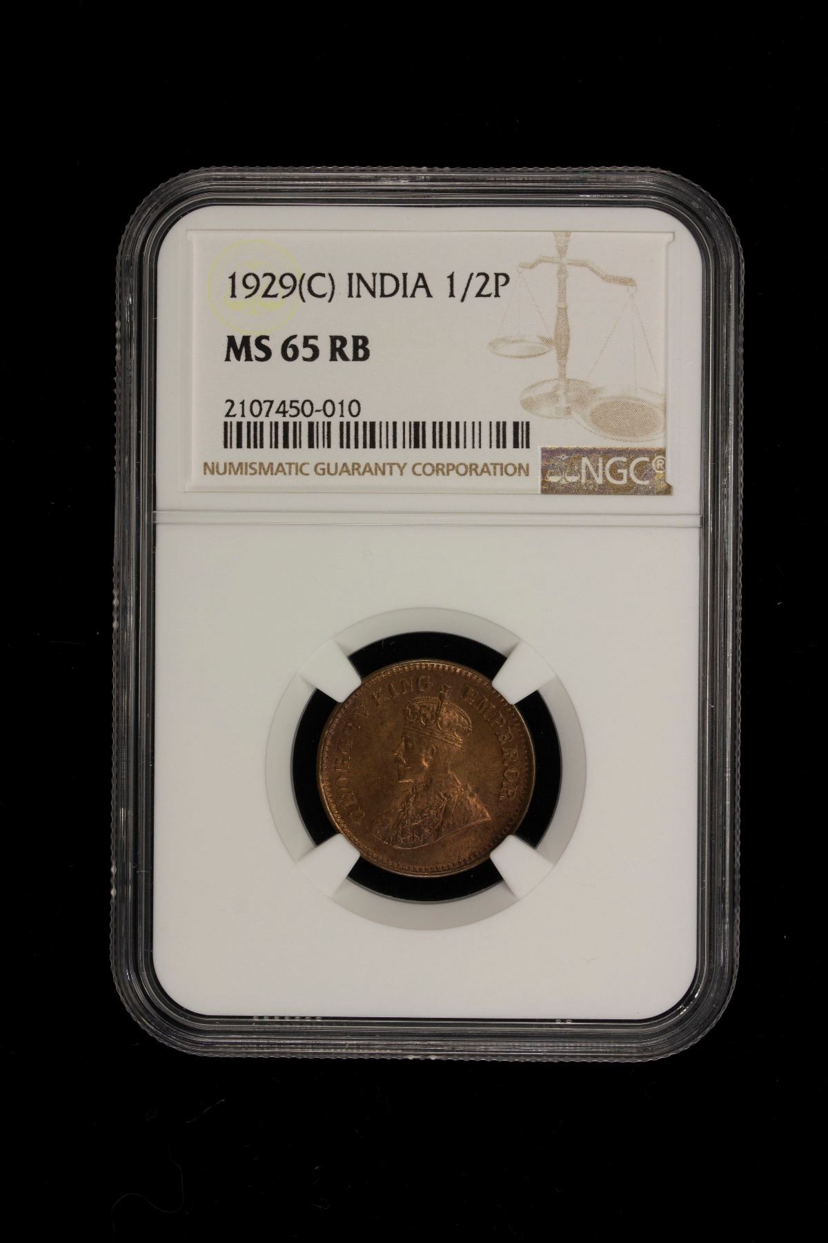 BRITISH INDIA: George V, 1910-1936, AE 1/2 pice, 1929(c), NGC MS65 RB. CAC