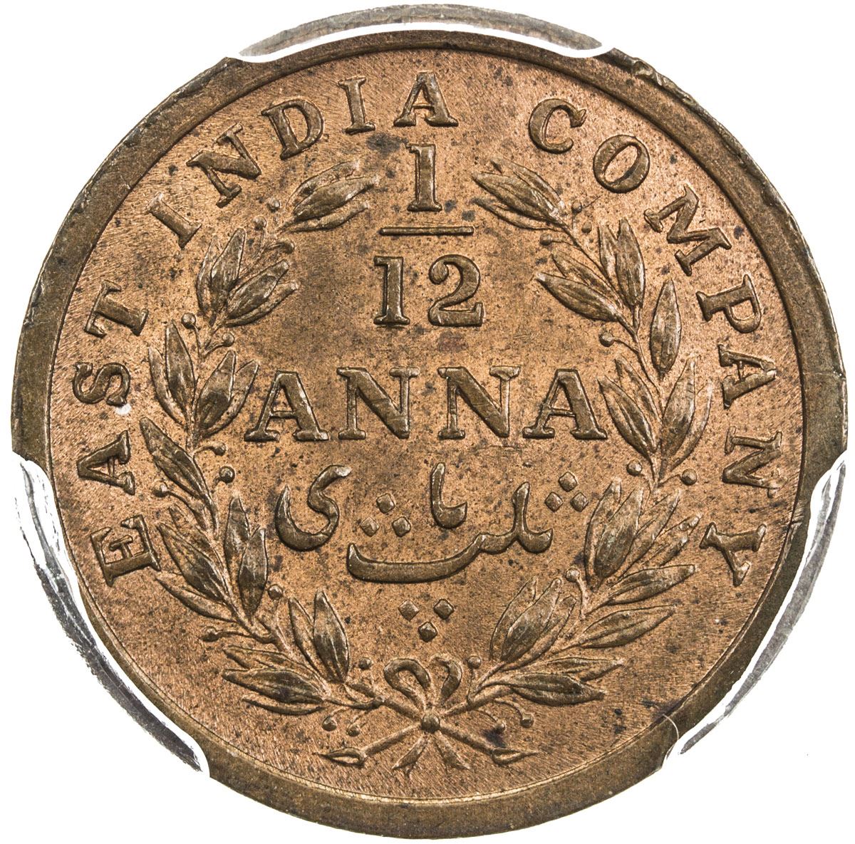 BRITISH INDIA: Victoria, Queen, 1837-1876, AE 1/12 anna, 1848. PCGS MS64