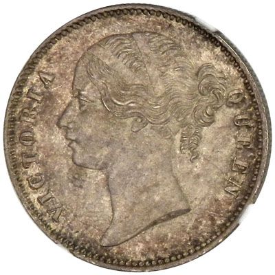 BRITISH INDIA: Victoria, Queen, 1837-1876, AR rupee, 1840(c), S&W-3.33, type A/1, 28 berries, raised "W.W. " on truncation, NGC graded MS65.