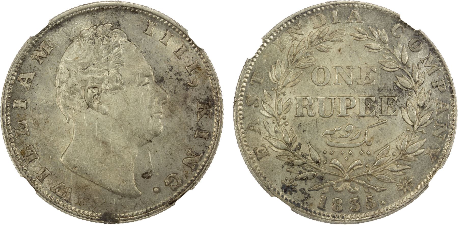 BRITISH INDIA: William IV, 1830-1837, AR rupee, 1835(c), NGC MS61