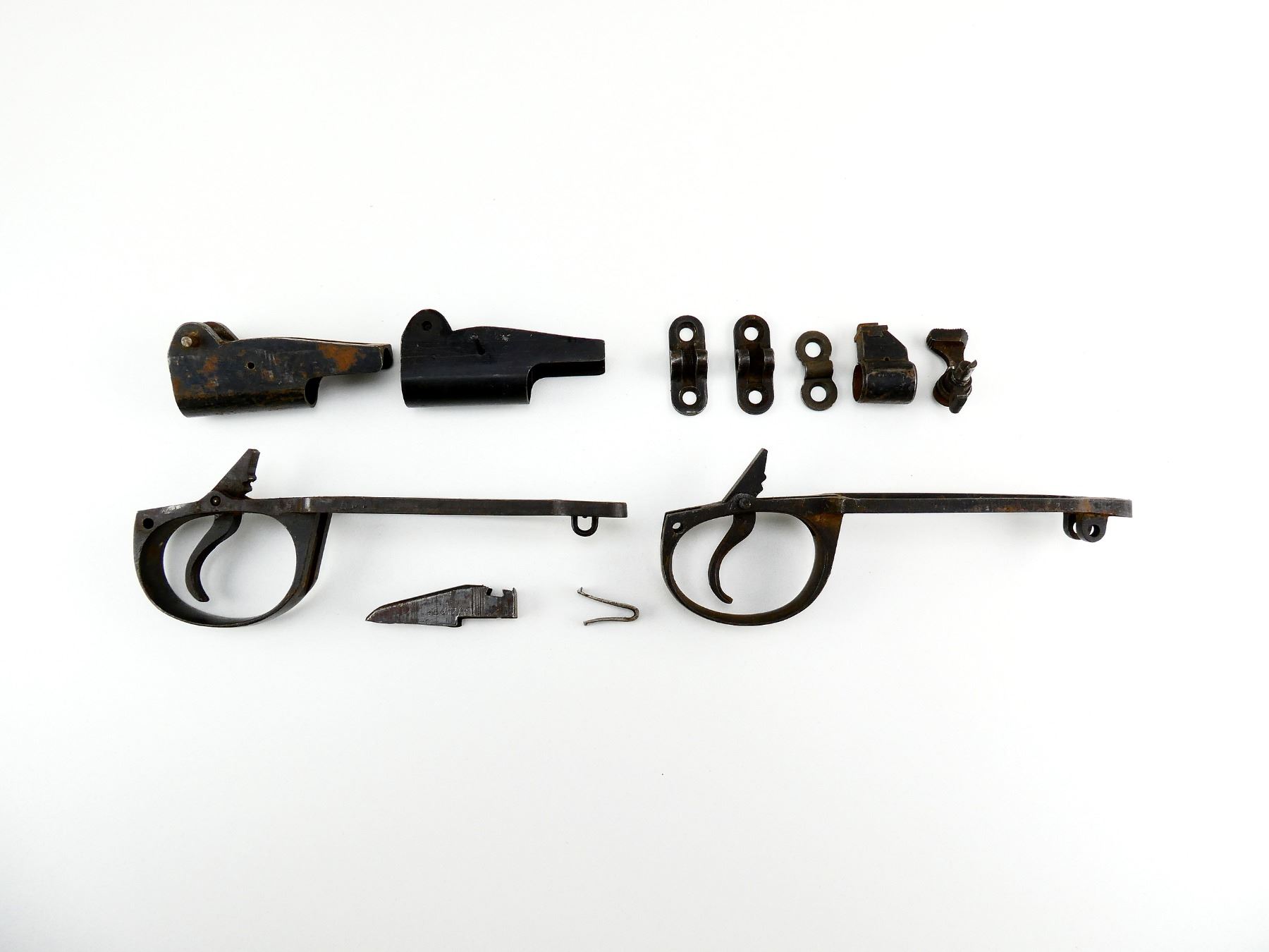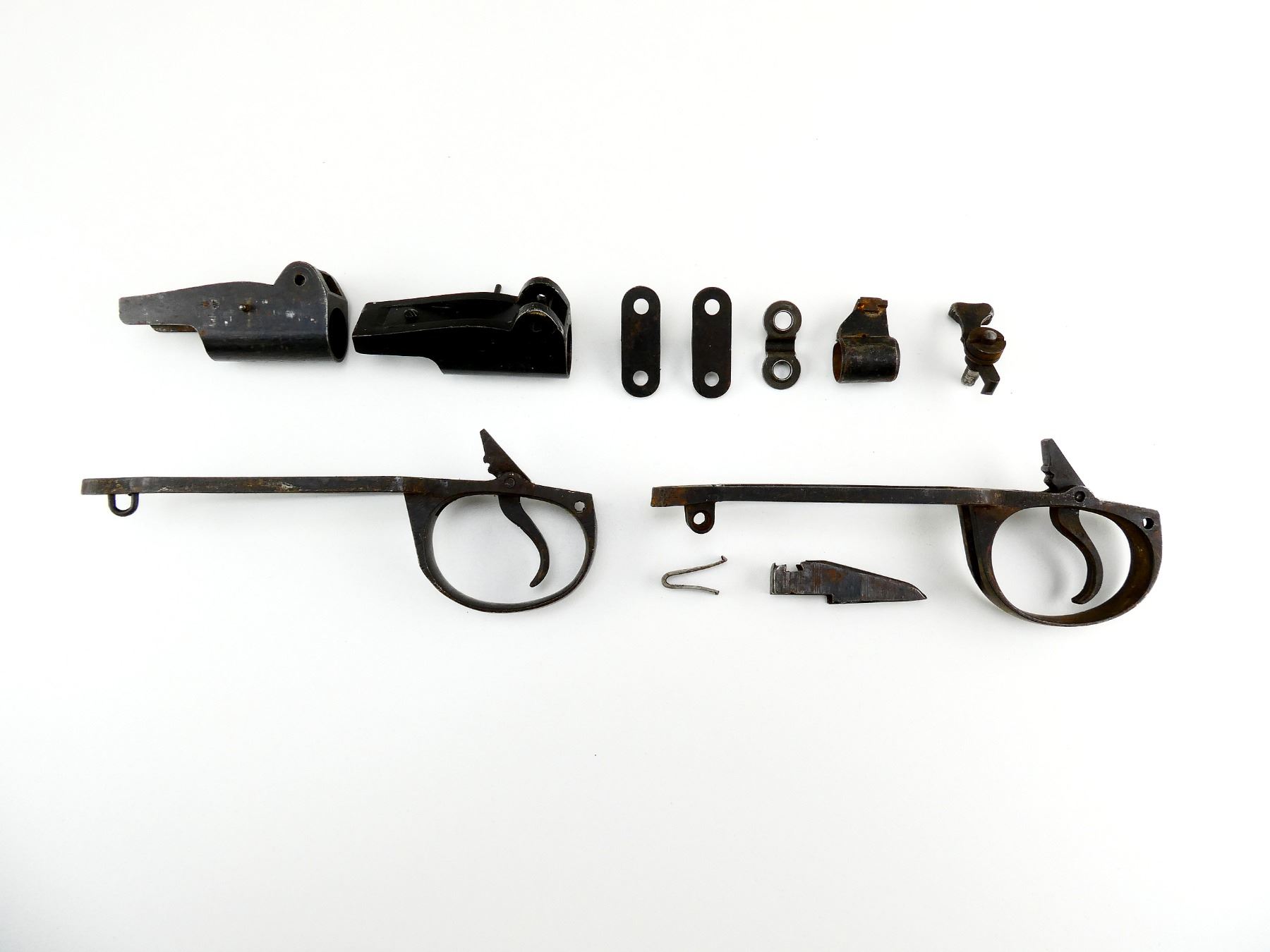 LOT INCLUDES; (2) TRIGGER GUARDS, (2) REAR SIGHT BASES, SAFETY, FRONT SIGHT, SWIVEL BASES, ETC. MAY REQUIRE FITTING. SEE PHOTOS.