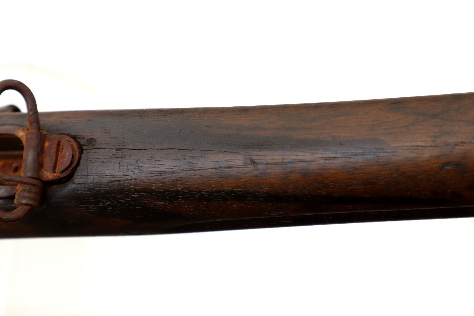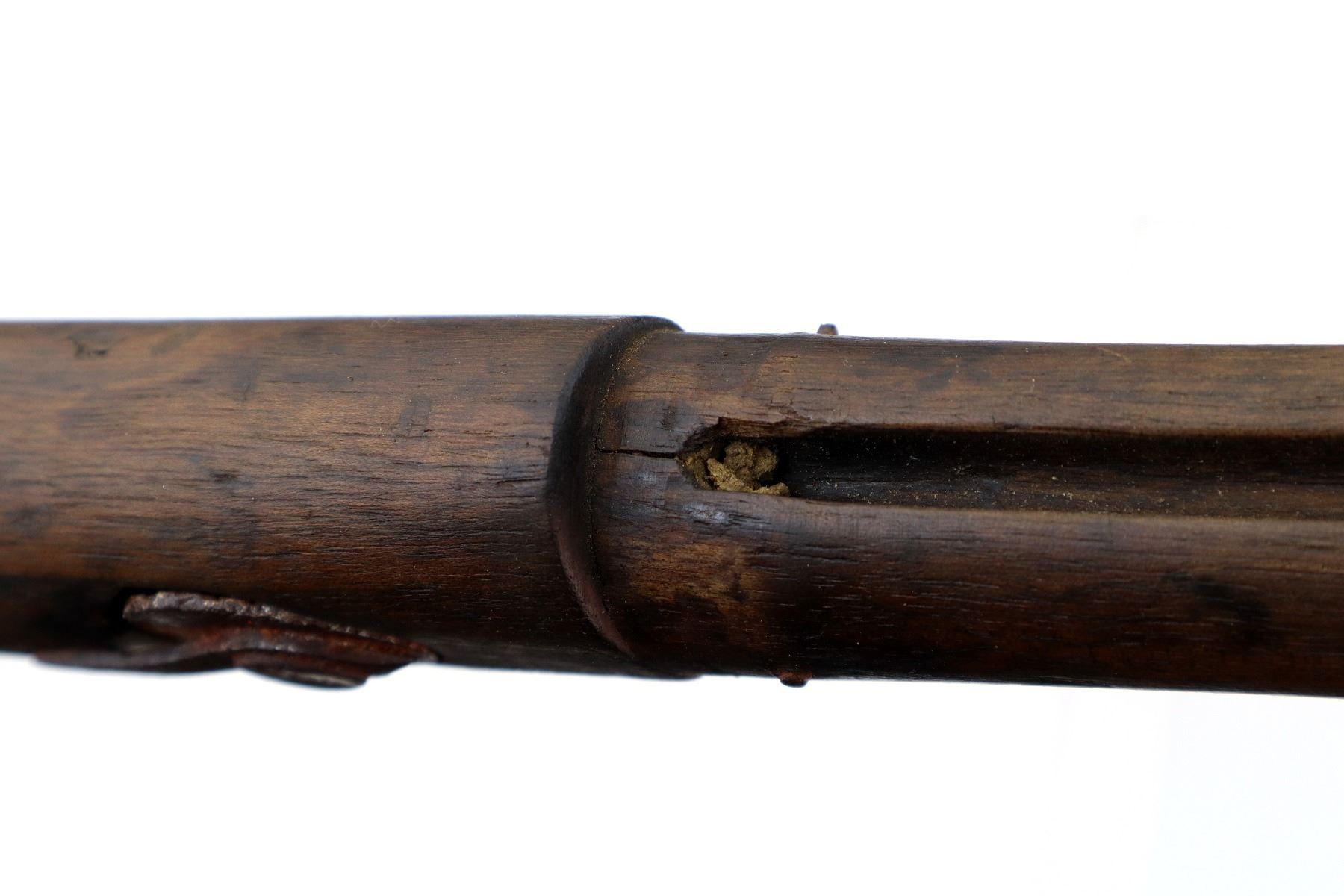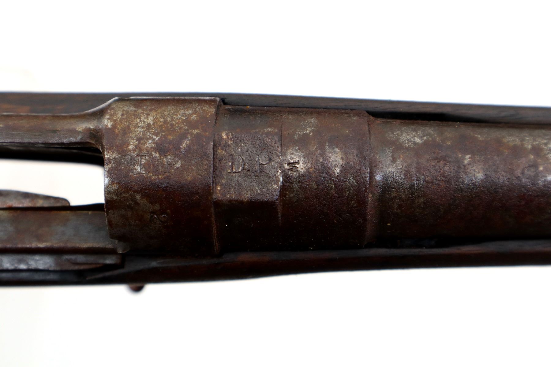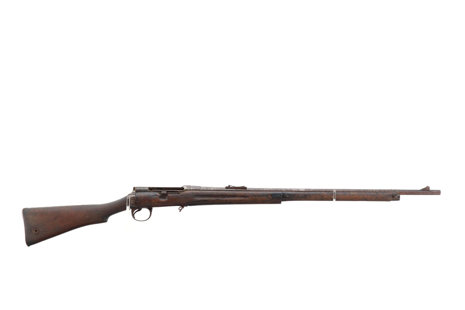 Main Description: Does not function mechanically as designed, Manufactured by Enfield 1890. Blade front sight with ramp, missing rear sight ladder, has the base and spring, has a magazine cut off, missing complete bolt, rear volley sight, barrel bands, nose cap and cleaning rod. Has Two piece full military wood stocks, forearm is chipped, cracked and broken, pistol grip, smooth steel butt plate with trap, stock cracked at heel and toe, has a steel stock disk missing screw.