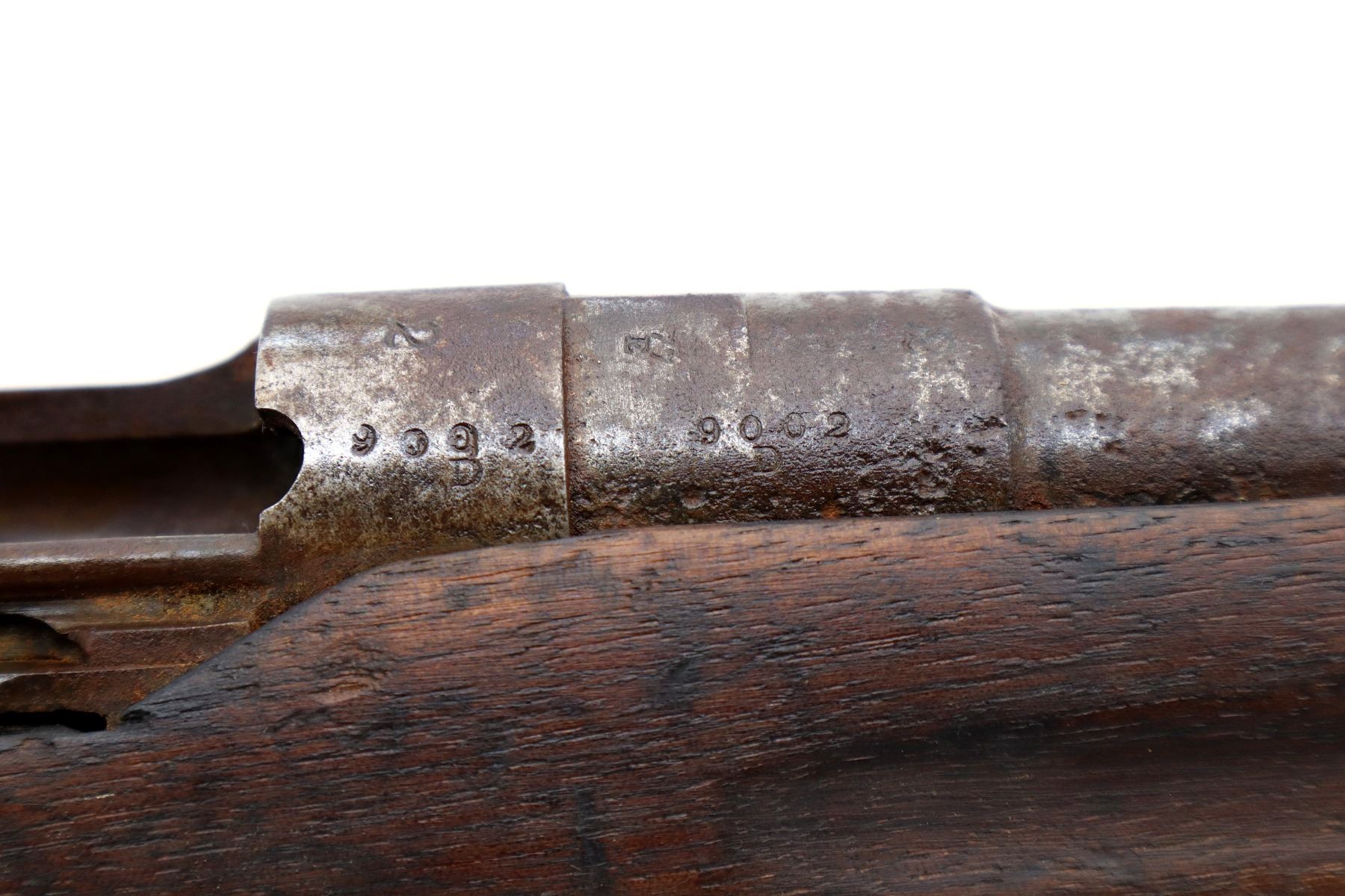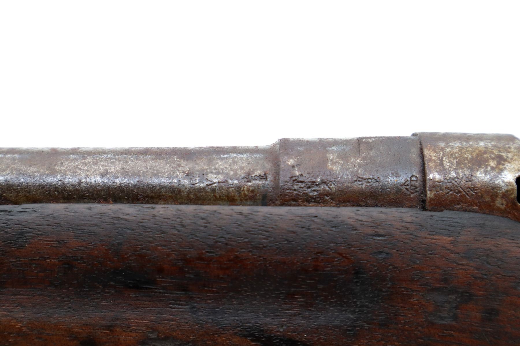 Wear: Metal finish shows pitting, rust, handling marks and wear. Stocks show marks, scratches and wear.
