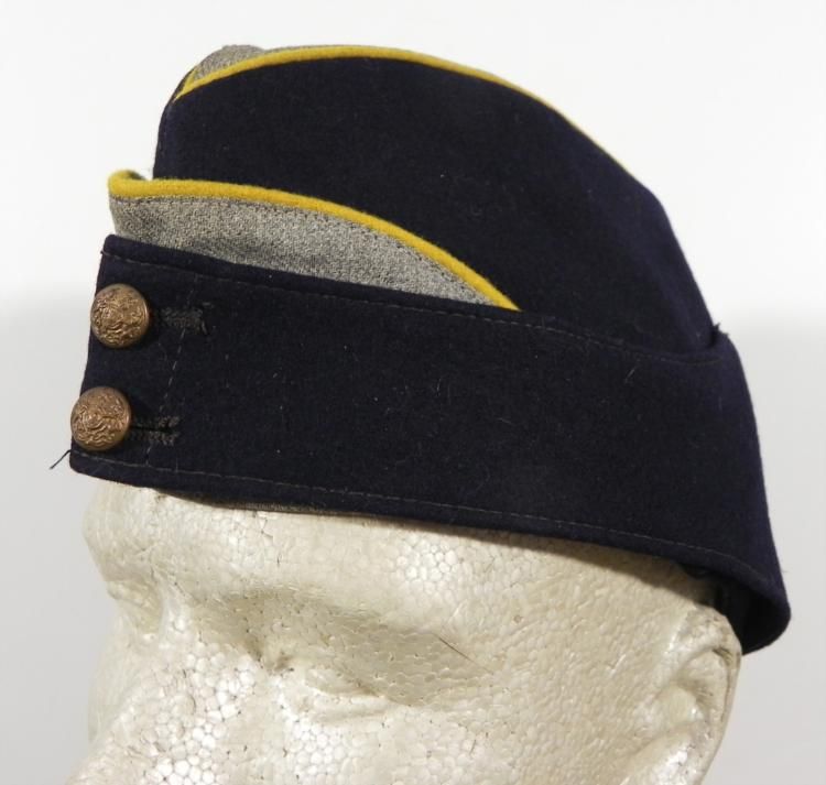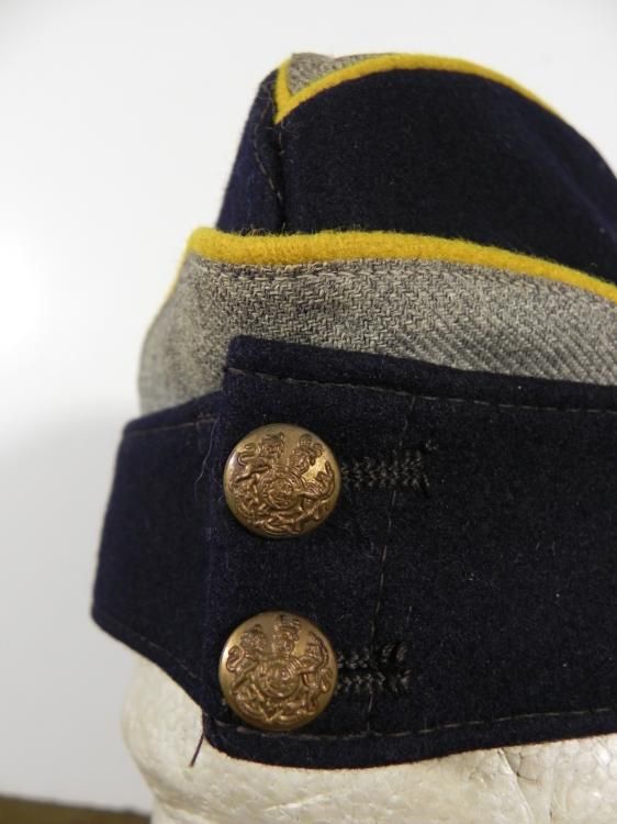 BRITISH MILITARY REGIMENTAL SIDE CAP-YELLOW PIPING-ROYAL"BUTTONS12"" WIDTH WHEN FLAT"