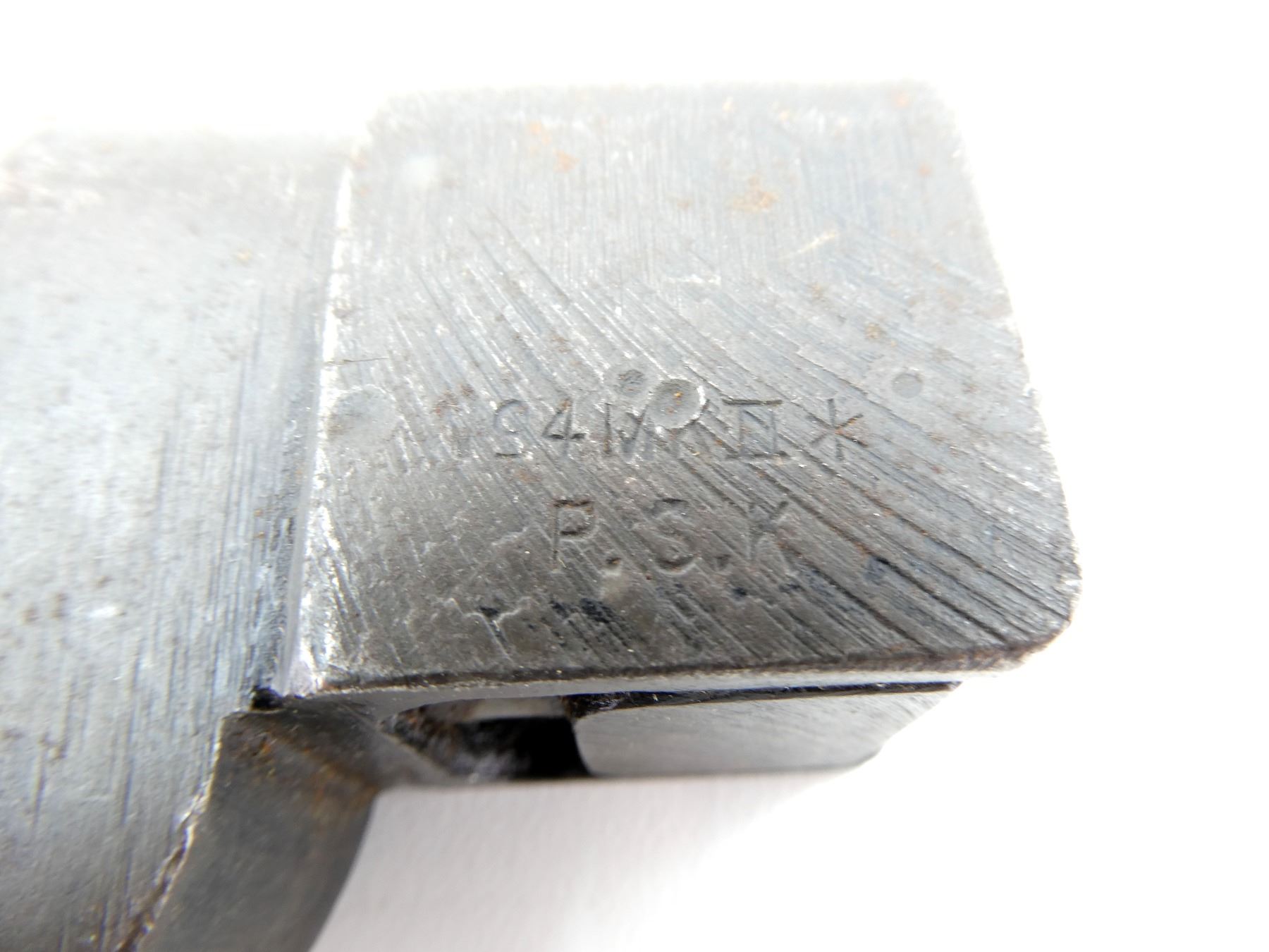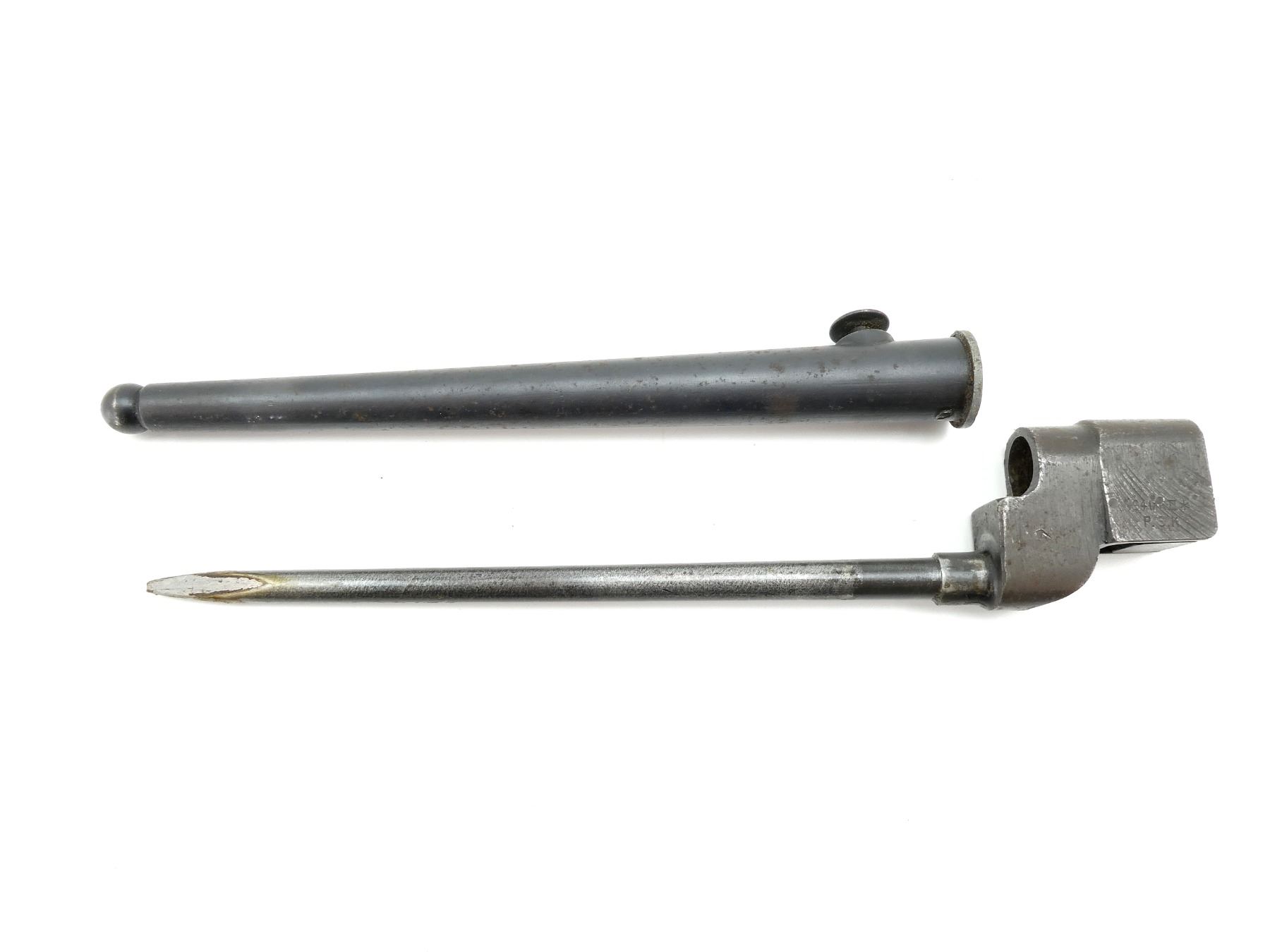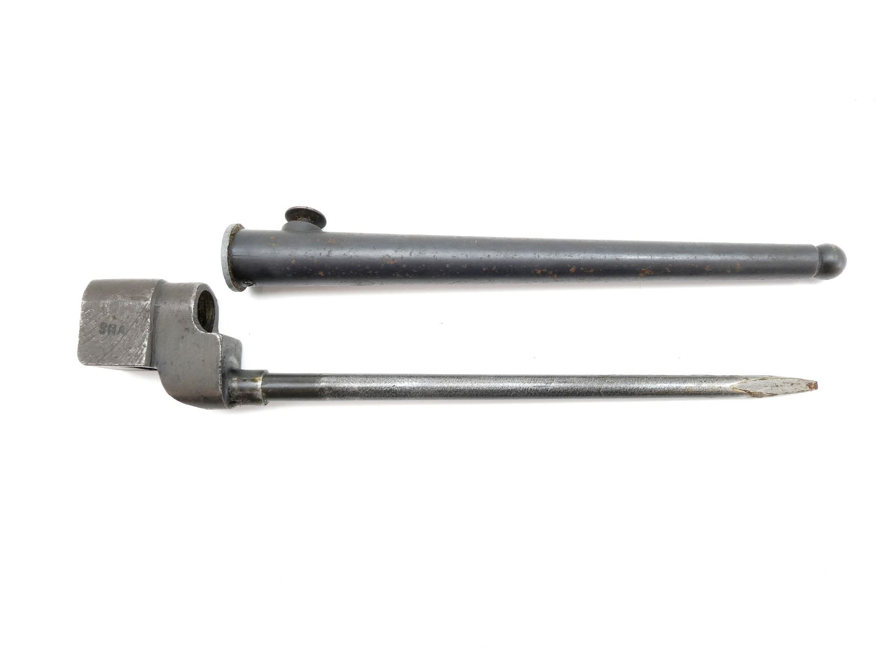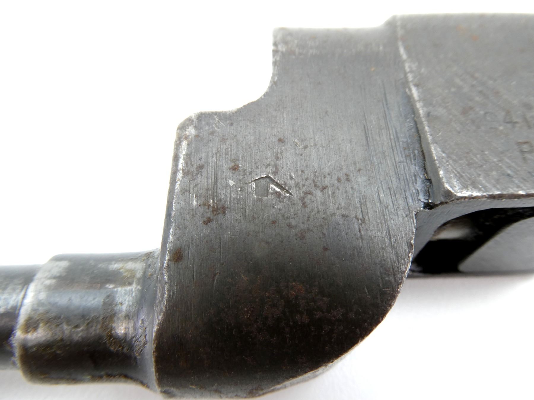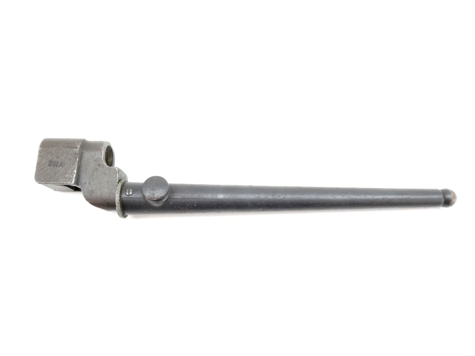 (1) FITS LEE ENFIELD NO.4 MKI & MKII SERIES RIFLES, SOCKET MARKED: "S4M. P.S.K.", BROAD ARROW, NO SCABBARD, BLADE APPROX. 8", OAL APPROX. 9 7/8". SEE PHOTOS.