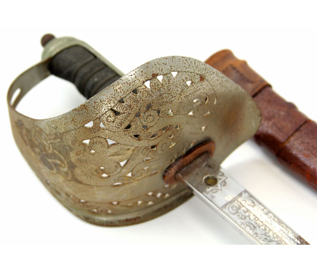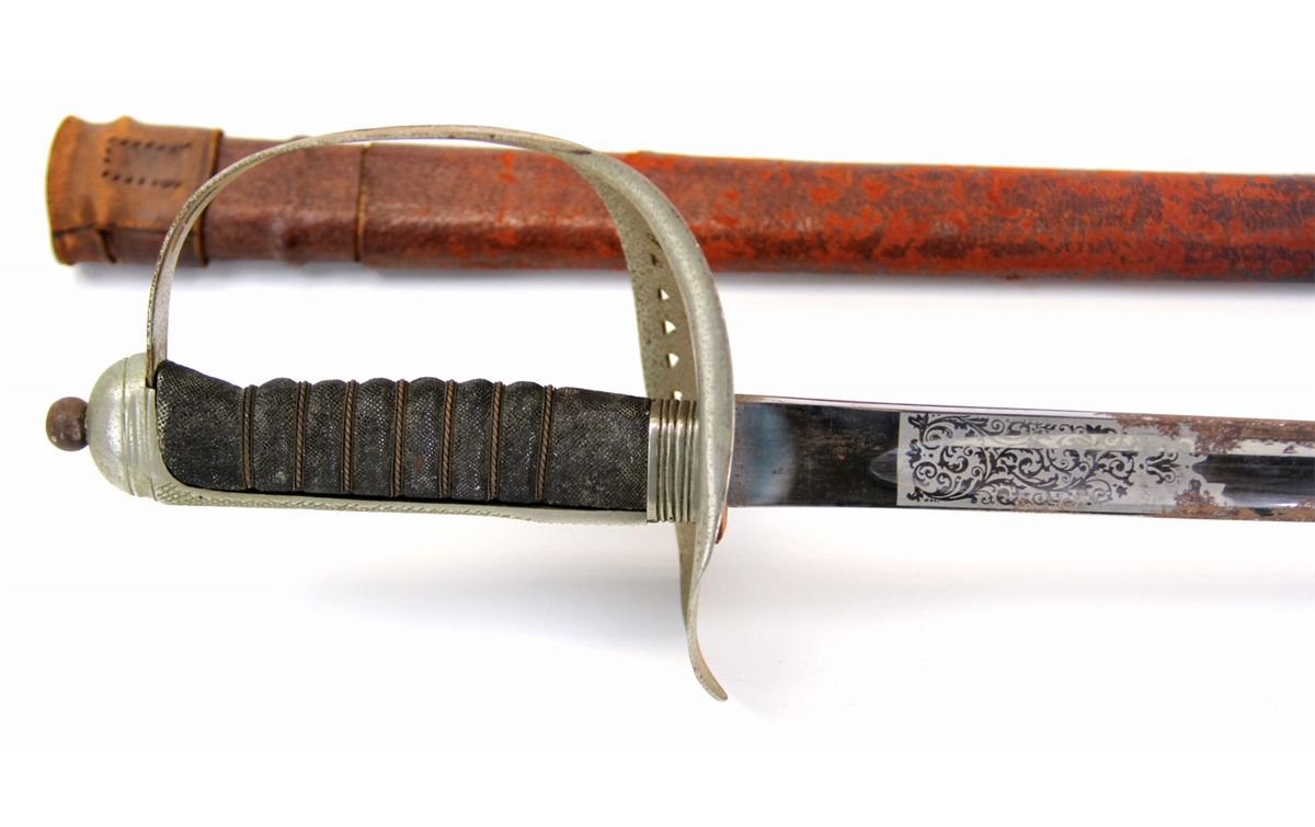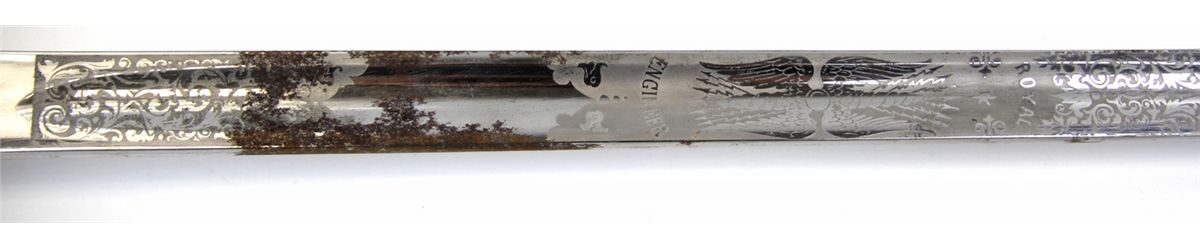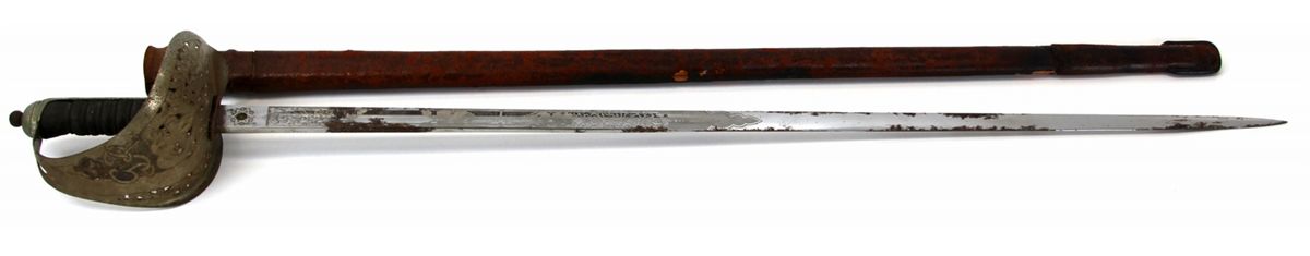 BRITISH PATTERN 1897 ROYAL ENGINEERS SWORD Etched blade. Type: Sword Country: UK Blade Length: 32.5" Overall Length: 38.5" Condition: Good with oxidation.