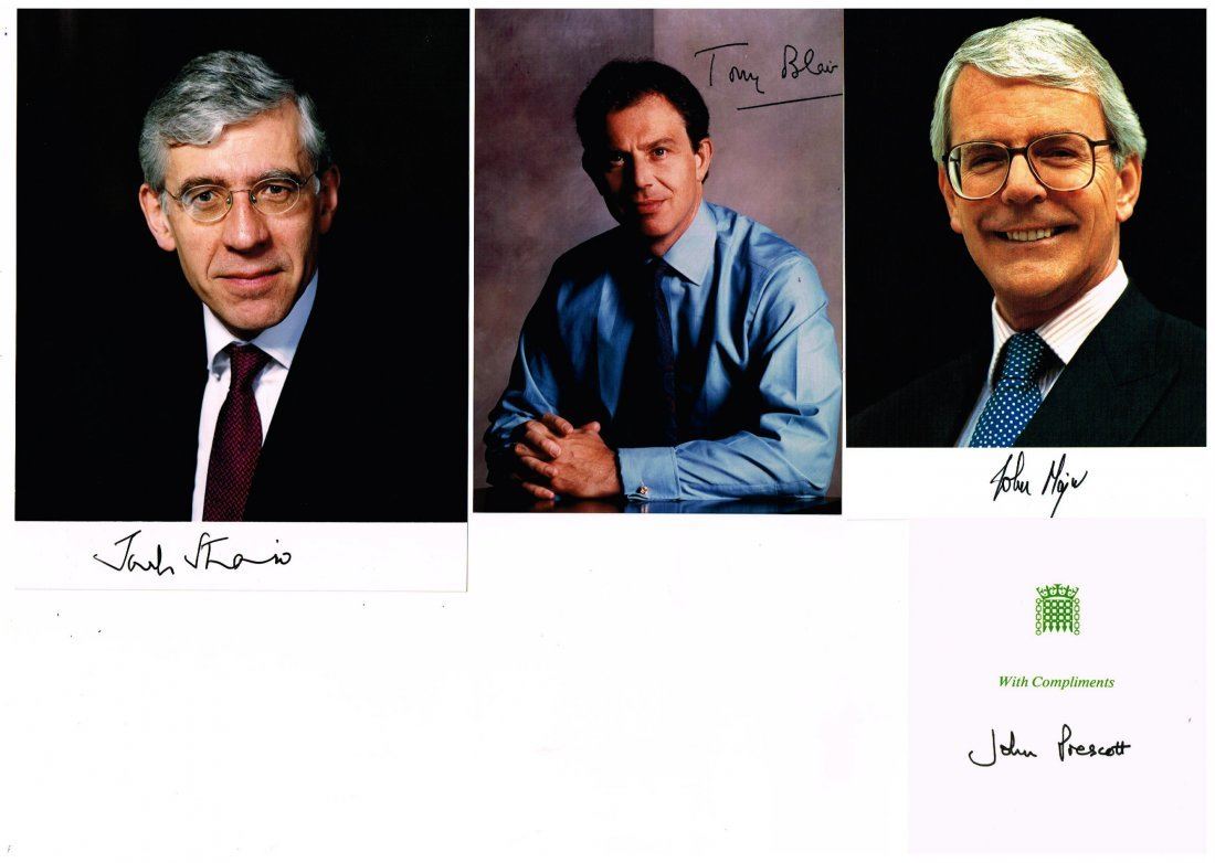 A collection of modern day Prime Ministers and MP's signed photos, and a signed letter from Robin Cook.
