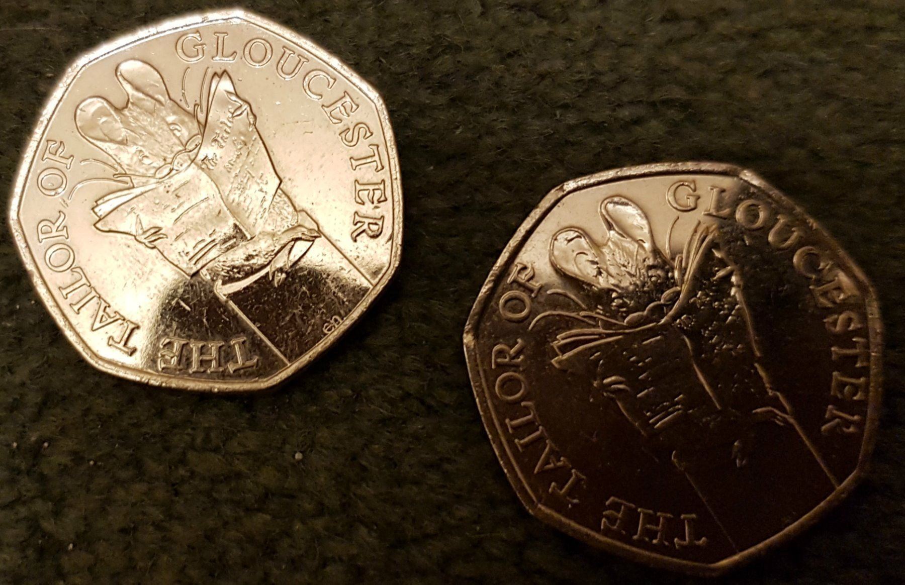 Lot comprises of 2x50p The Tailor of Gloucester coins.