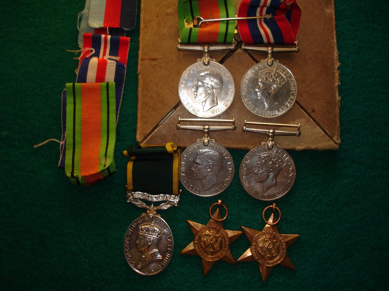 WW 2 MEADALS SET OF 7 AND POSTTUMON MEADAL ALL WITH RIBBONS AND BOXS AND PAPERS BUCKINGHAM PALACE PAPERS ,204414 PTE JOHN WILLIAM COUSINS KINGS ROYAL RIFLE CORPS ,DIED IN A ACTION USD 500 TO 800 USD