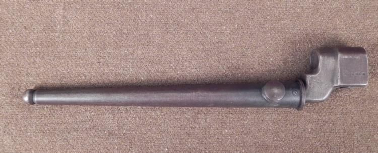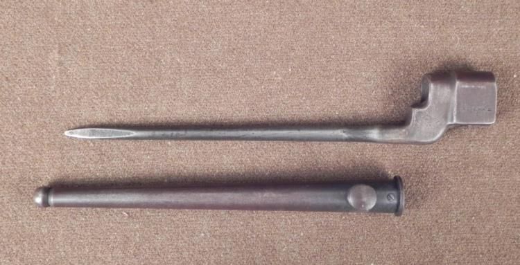 BRITISH WWII No 4 MK II SPIKE BAYONET WITH SCABBARD * * GREAT LOOKING SPIKE BAYONET--10 1/4" IN LENGTH--DARKENED METAL-GREAT CONDITION *