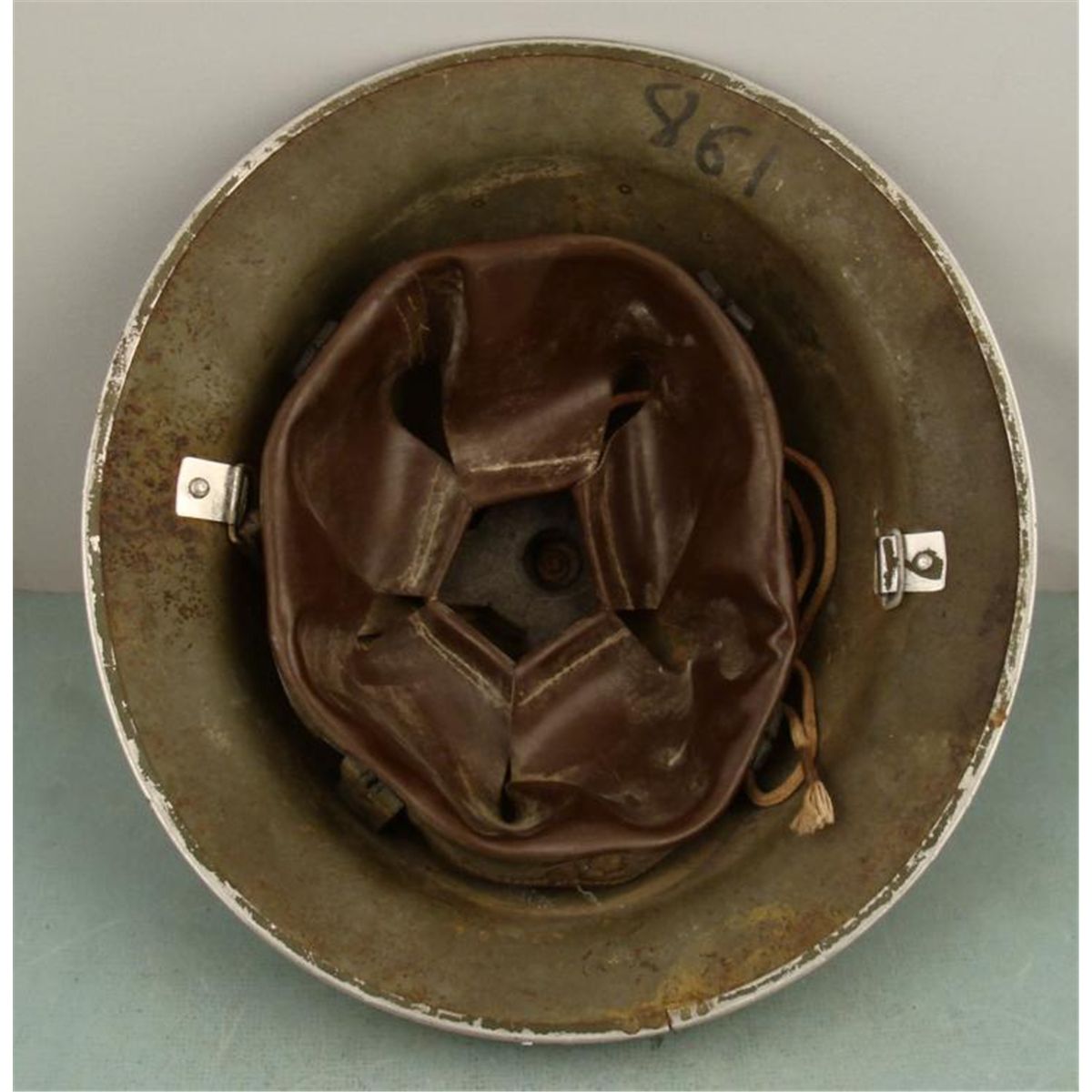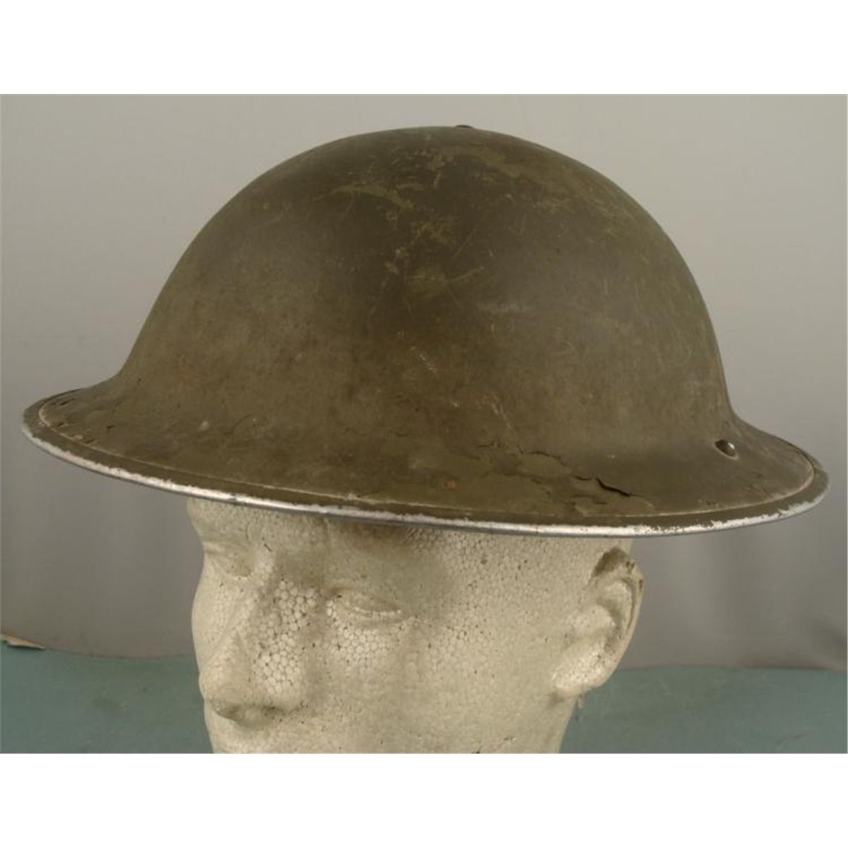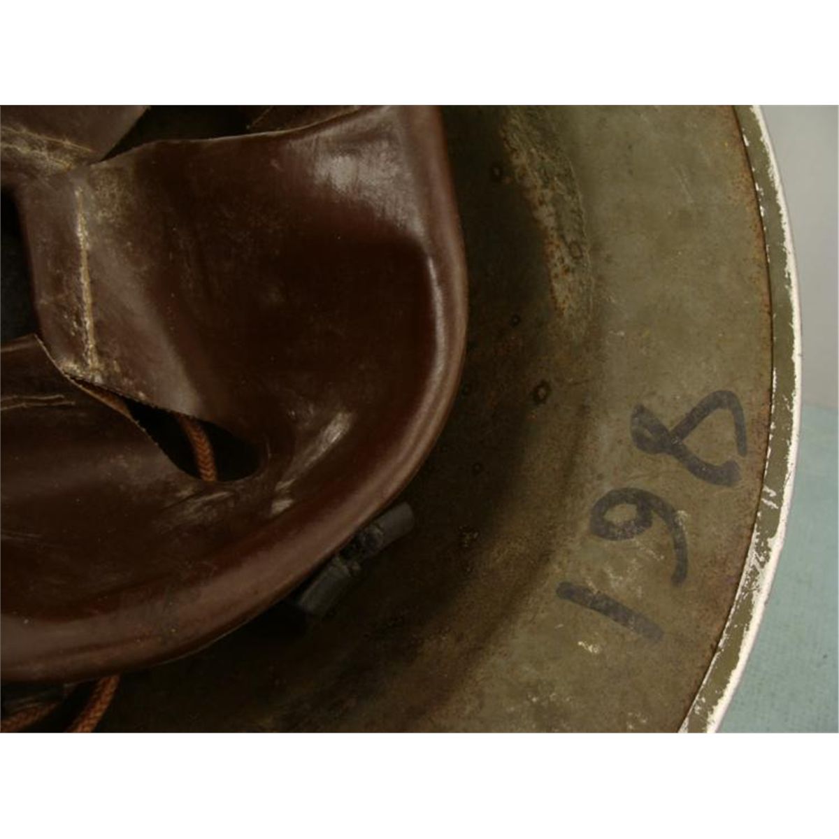 THIS IS A GREAT LOOKING BRITISH WWII TYPE II STEEL POT COMBAT HELMET. IT HAS A SMOOTH OLIVE DRAB FINISH WITH COMPLETE LINER. THE IS SHELL IS STAMPED "RO & CO BB II" -RUBERY OWEN & COMPANY LTD-(HELMET MAKER 1939-43). IT IS ALSO STAMPED "II" FOR TYPE TWO AND IS INK MARKED "861". *