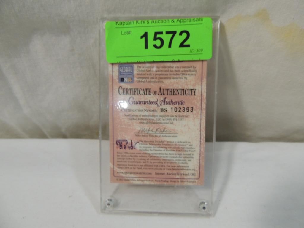 BRITNEY SPEARS COLLECTOR CARD WITH OUTFIT SWATCH, FABRIC SWATCH, COA ON BACK OF CARD, AS SHOWN SEE PHOTO FOR MORE DETAILS.